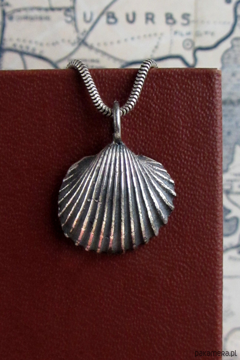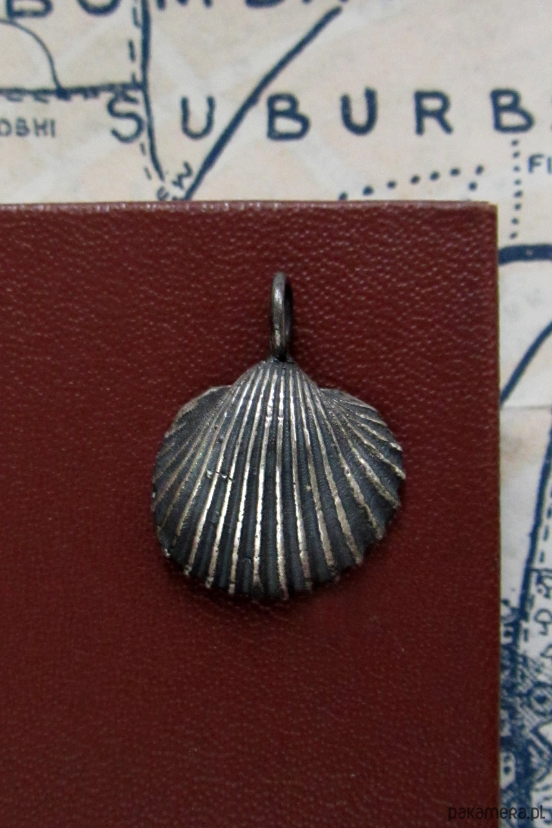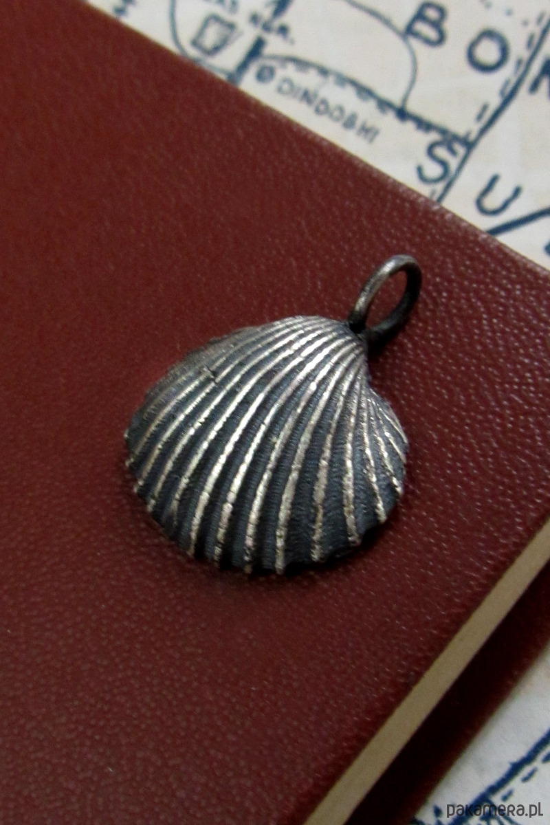 Zawieszka przedstawia muszlę sercówki i została odlana na podstawie prawdziwej muszli, dzięki czemu zachowano wszystkie jej detale i delikatność.
