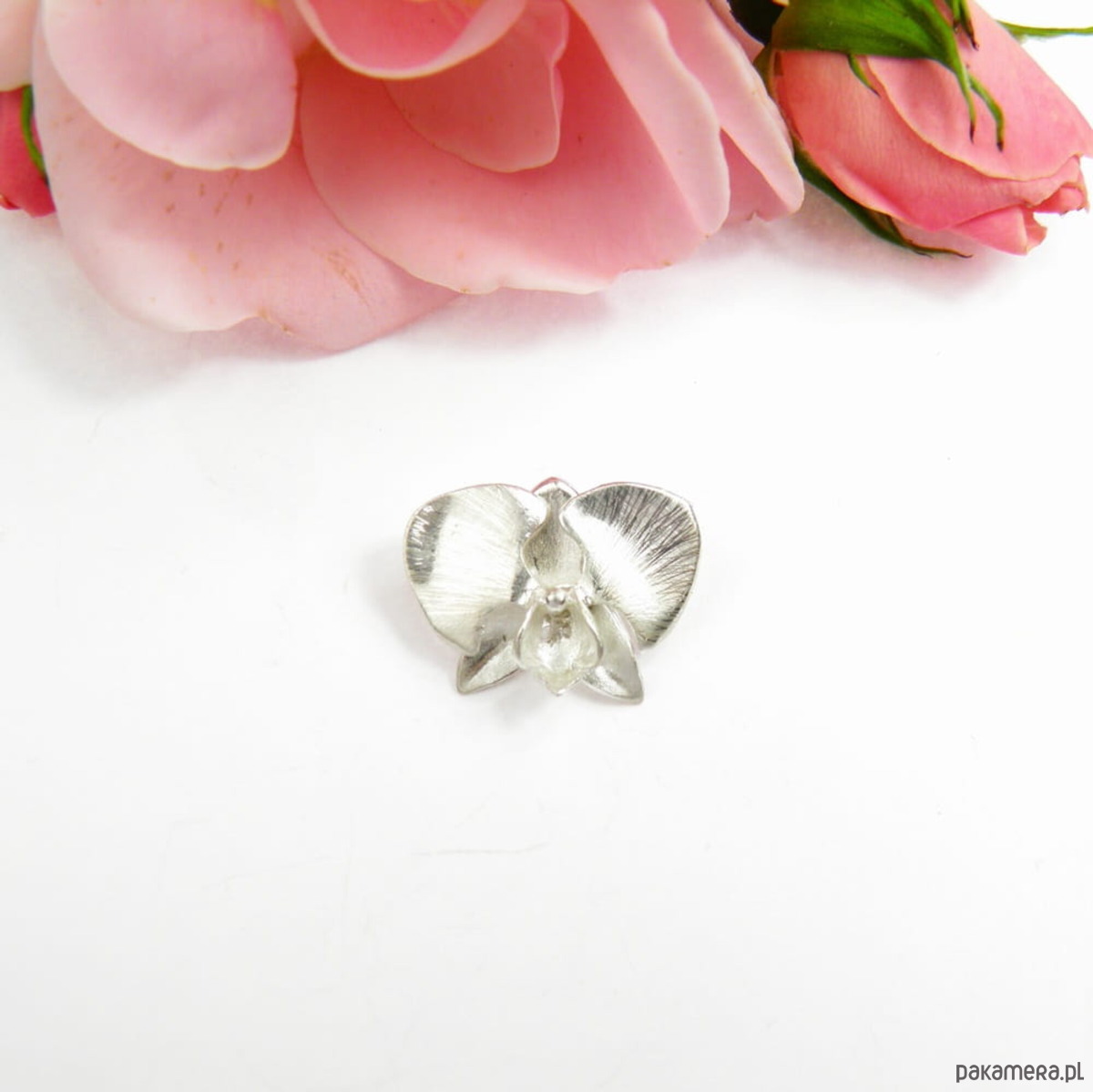 Zawieszka srebrna - Satynowa orchidea mała
