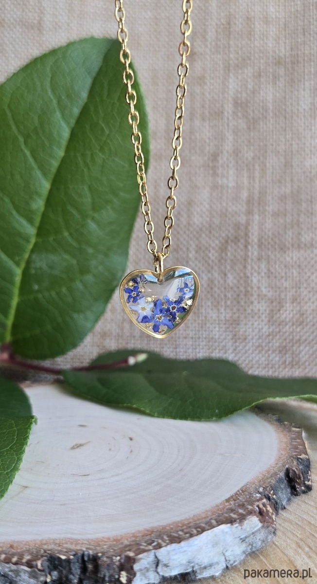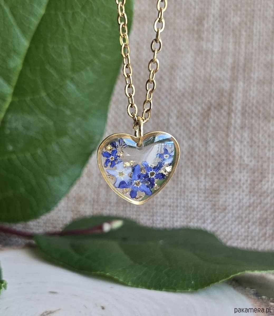 Oferuję Państwu unikalną biżuterię. Zawieszka jest wykonana z suszonych kwiatów i żywicy epoksydowej. Biżuteria jest wspaniałym i oryginalnym prezentem na lata.