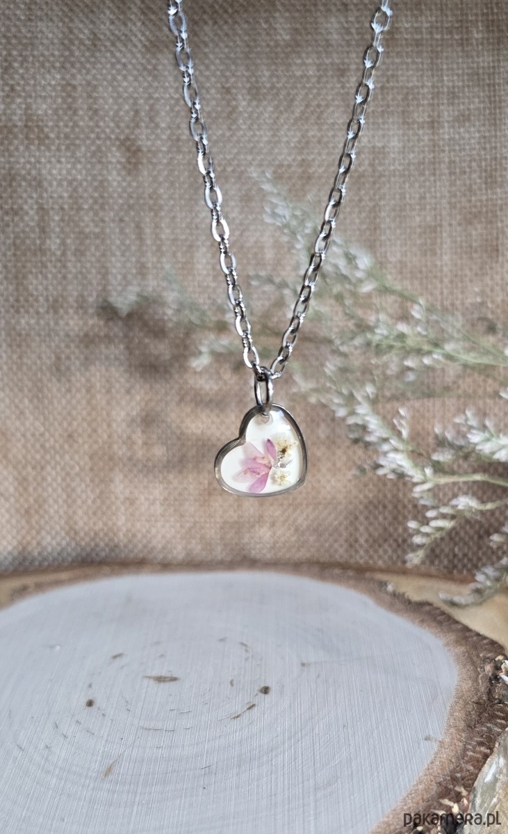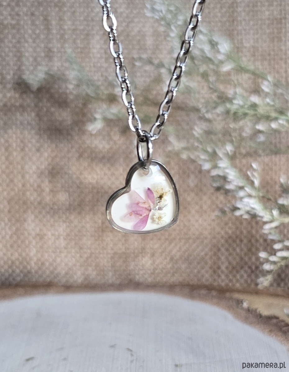 Oferuję Państwu unikalną biżuterię. Zawieszka jest wykonana z suszonych kwiatów i żywicy epoksydowej. Biżuteria jest wspaniałym i oryginalnym prezentem na lata.
