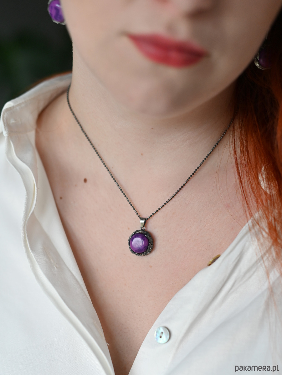 Fioletowa Magia w Oksydowanej Oprawie - Zawieszka z Sugilitem