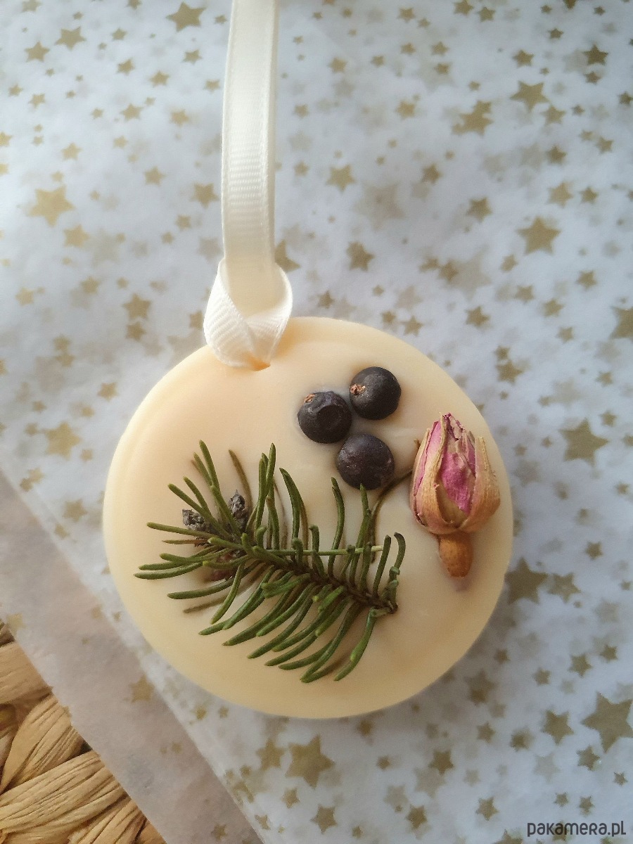 Świąteczna zawieszka zapachowa o aromatach piżma oraz wanilii. Wspaniale odświeża przestrzeń.