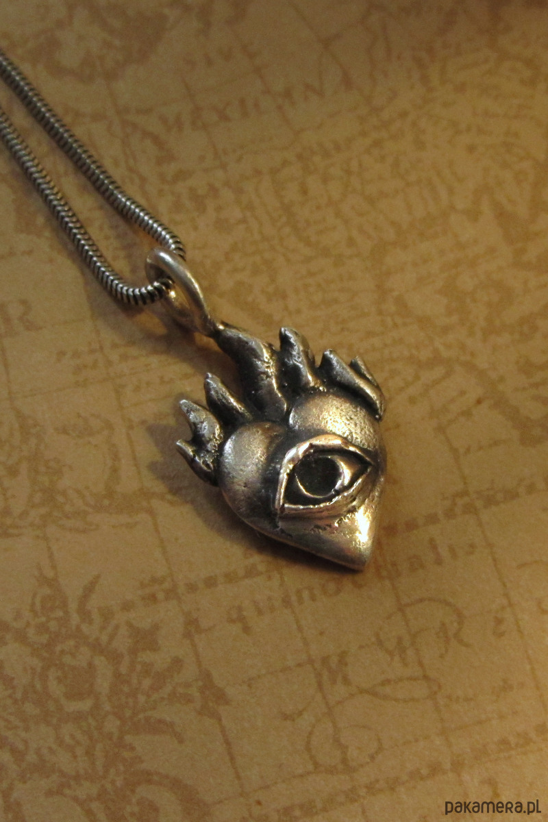Zawieszka przedstawia Płonące serce- symbol miłości, pasji i przemiany.