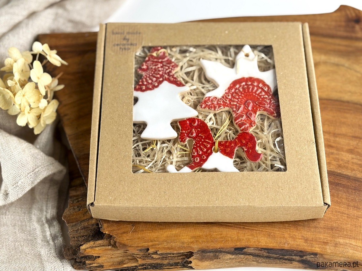 Wprowadź do swojego domu świąteczną magię z naszymi ręcznie robionymi ceramicznymi zawieszkami w klasycznych odcieniach bieli i czerwieni. Każda z nich została starannie uformowana i szkliwiona z dbałością o najmniejszy detal, dzięki czemu każda sztuka jest wyjątkowa i niepowtarzalna.
