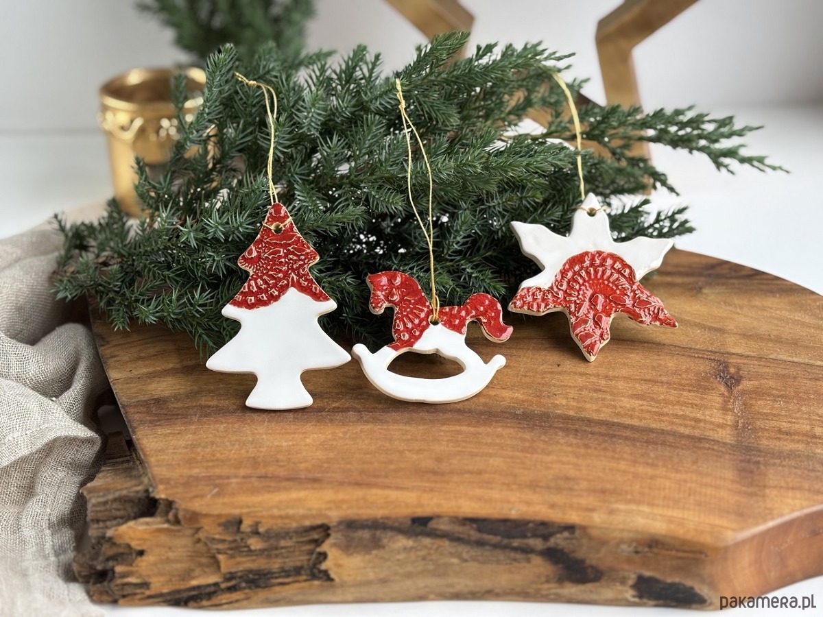 Ceramiczne zawieszki świąteczne – biało-czerwone