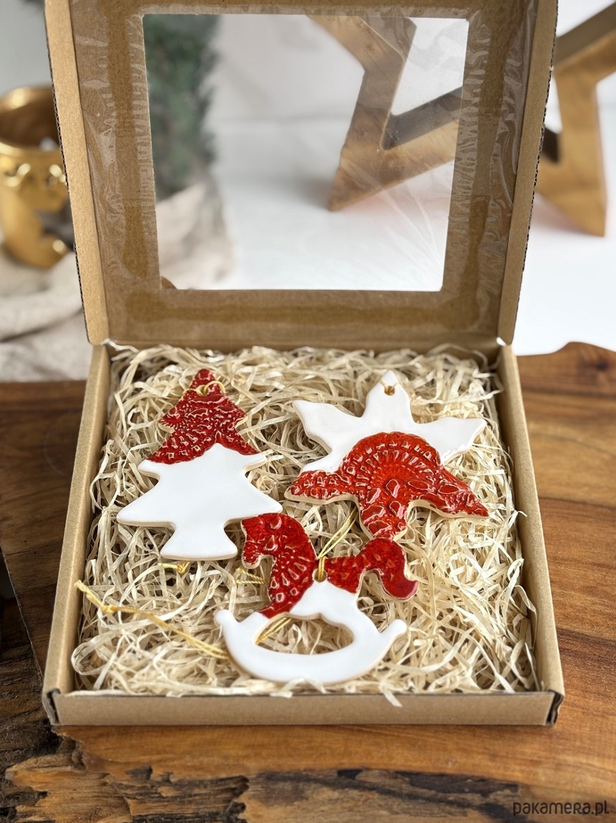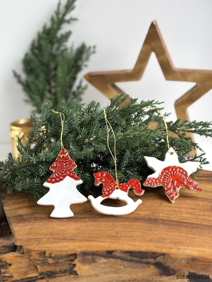 Ceramiczne zawieszki świąteczne – biało-czerwone