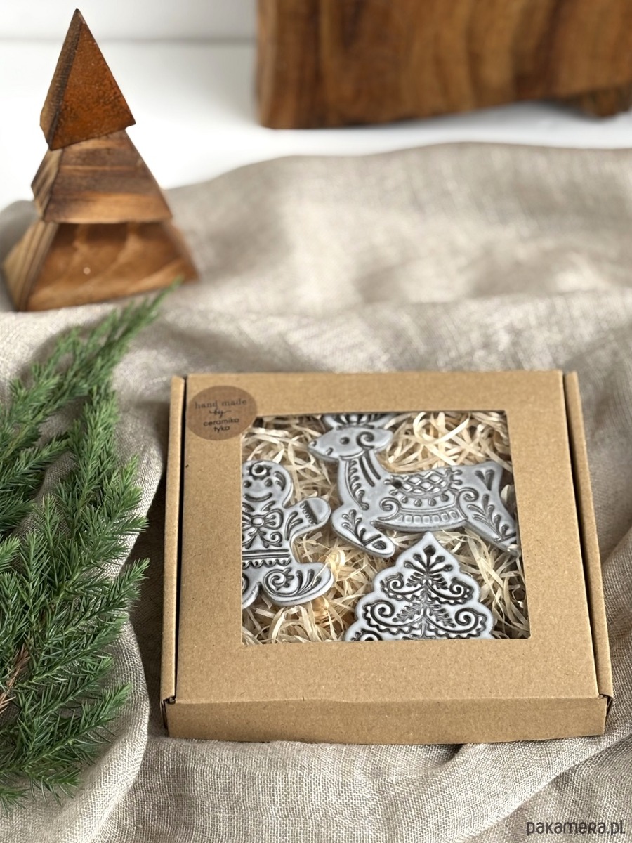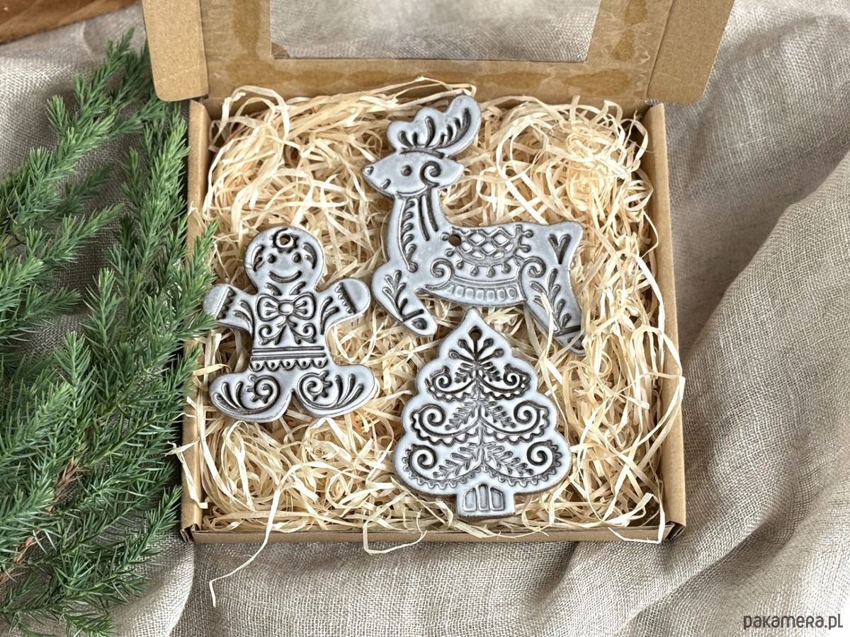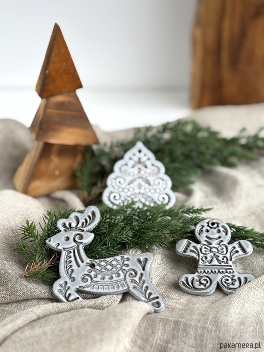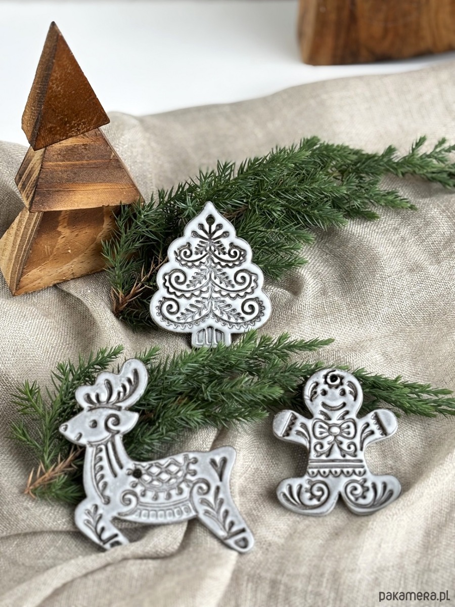 Zestaw 3 zawieszek choinkowych ceramicznych: