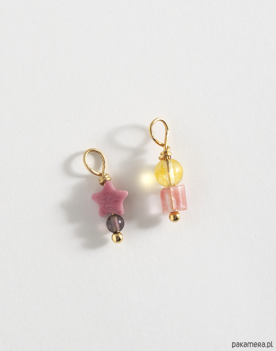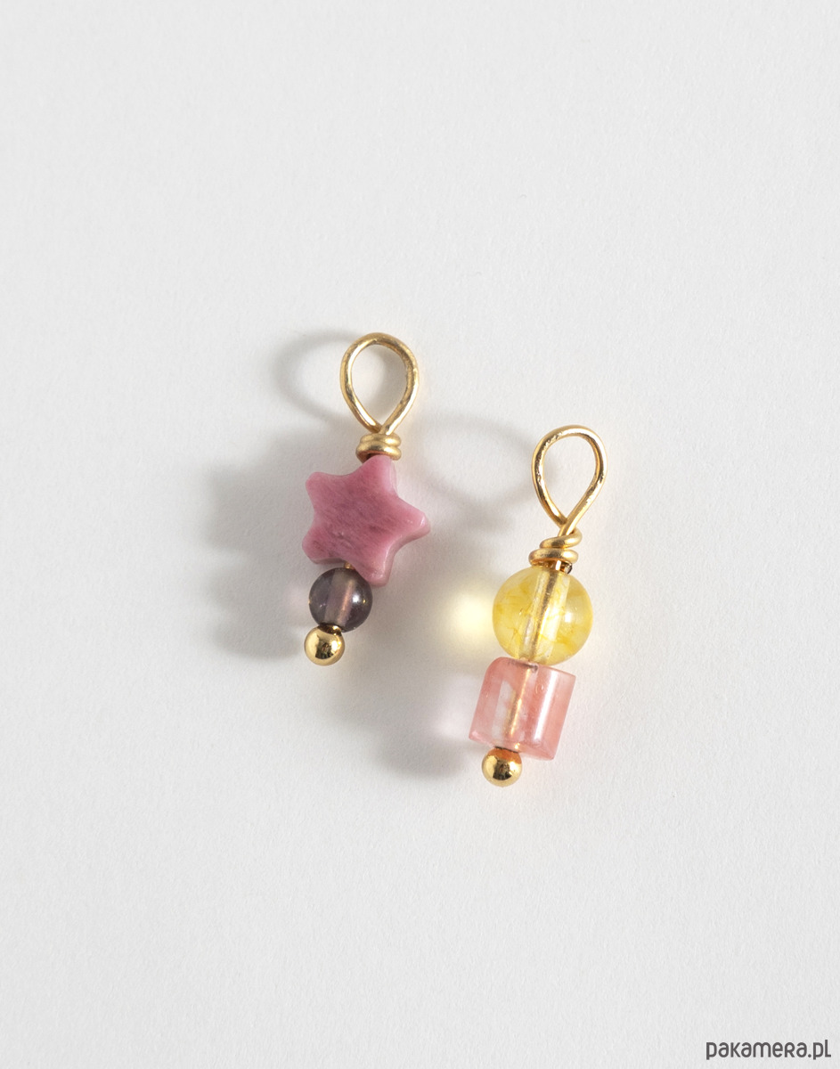 Zestaw dwóch wymiennych zawieszek do kolczyków, wykonanych z kamieni naturalnych.