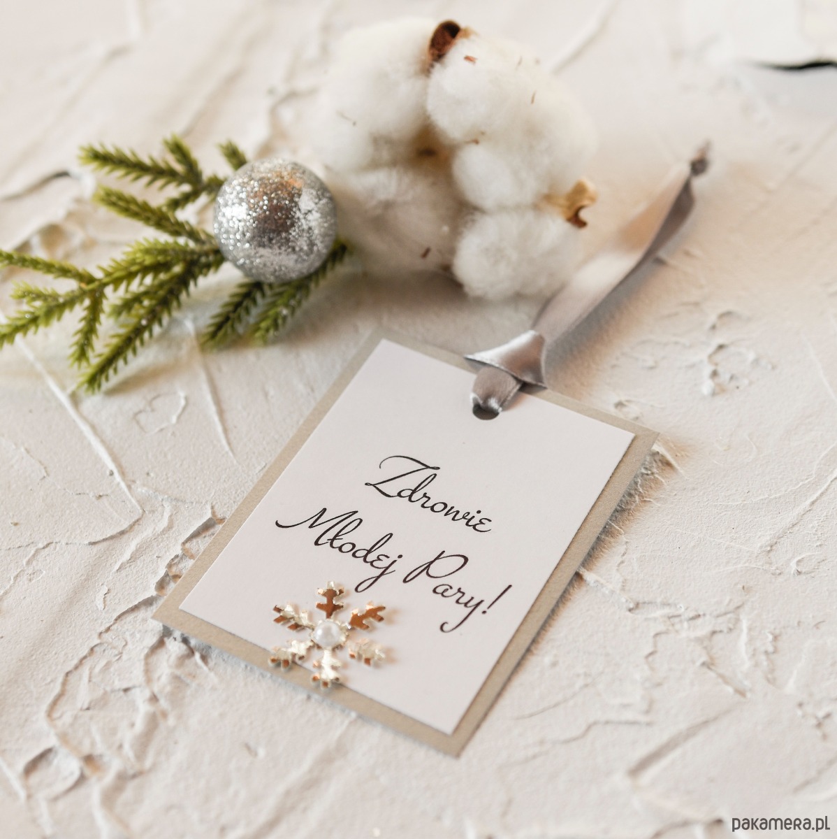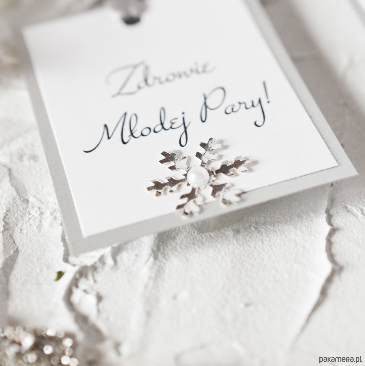 Zawieszki na butelki alkohol ślubne zimowe 10 sztuk