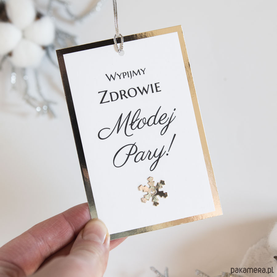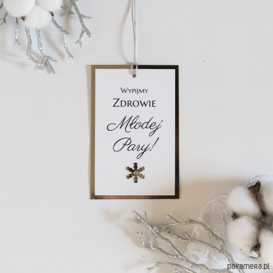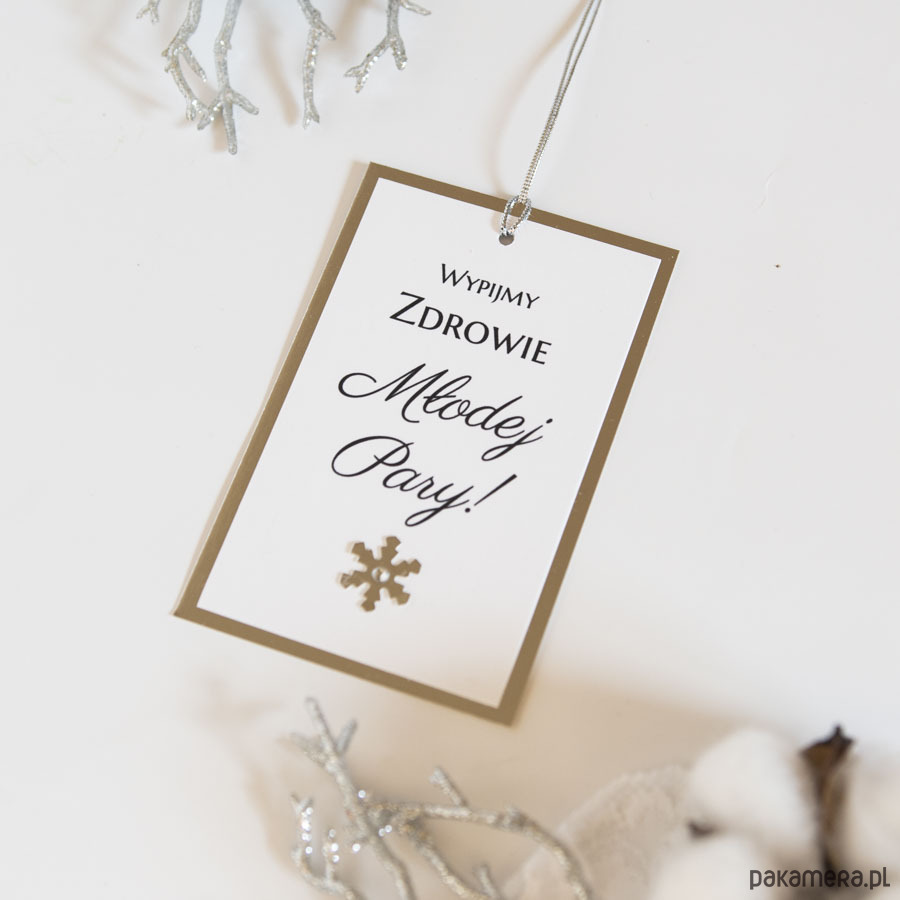 Zawieszki na butelki alkohol ślubne zimowe 10 sztuk