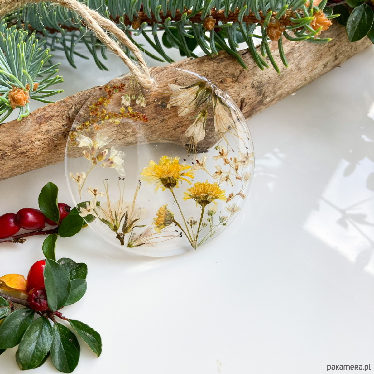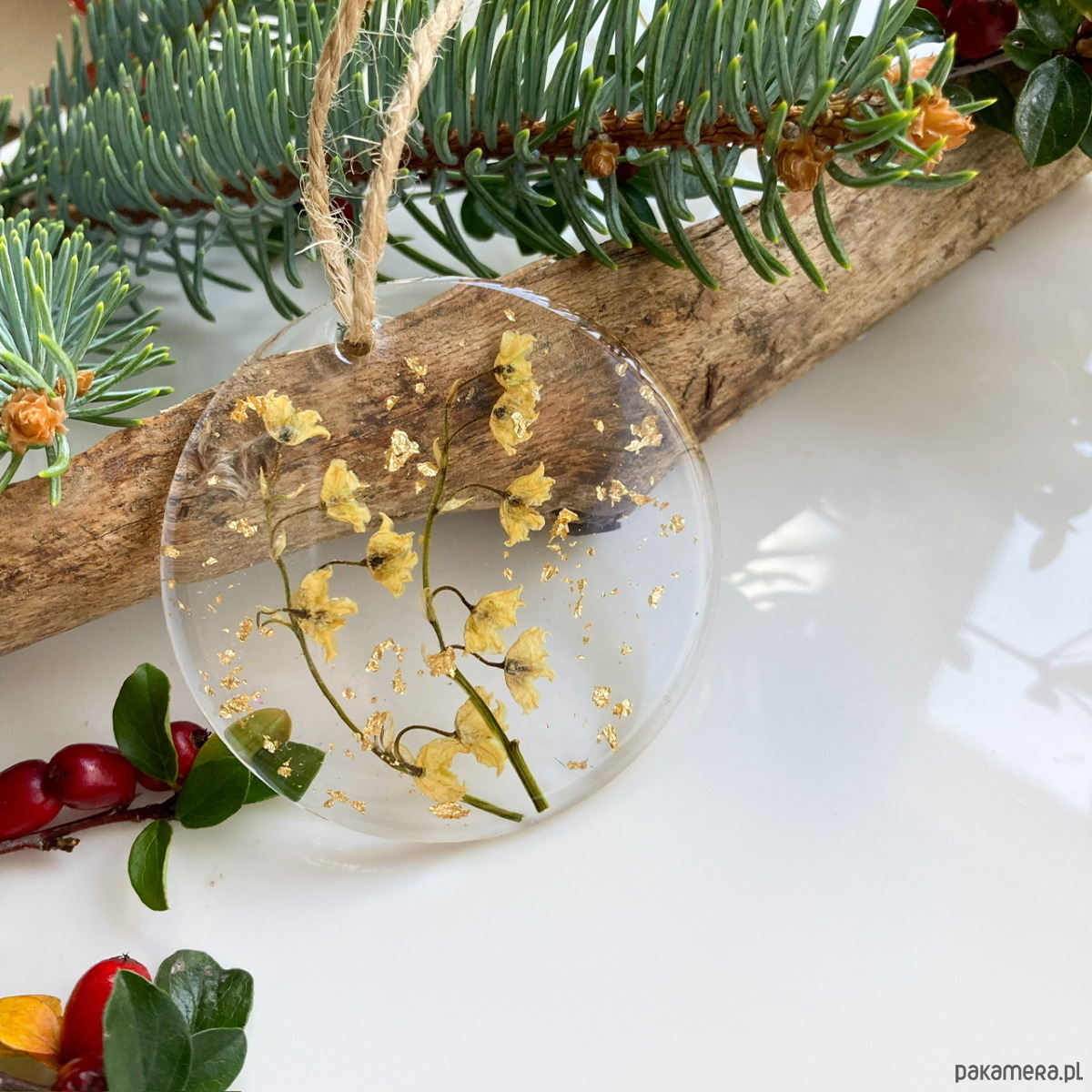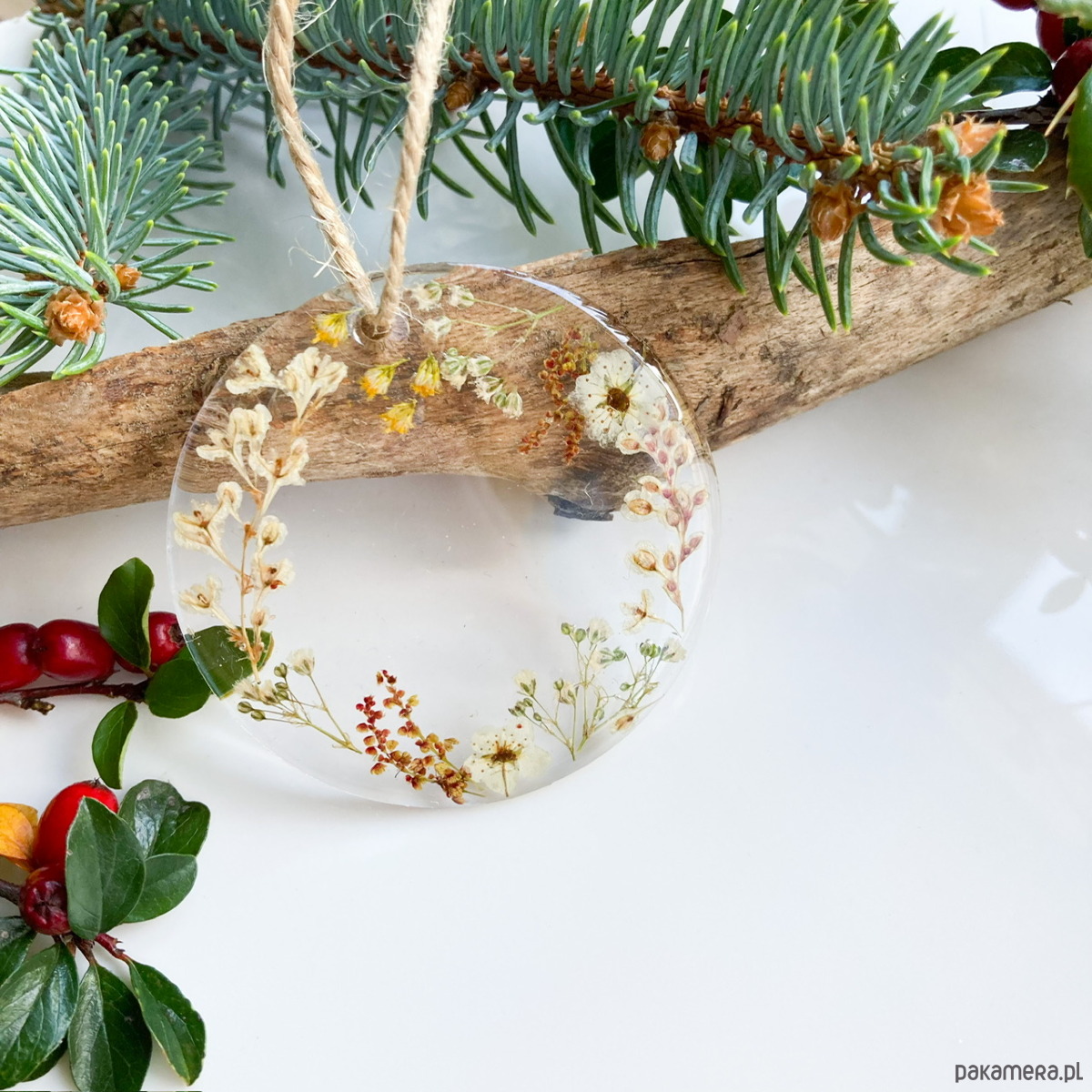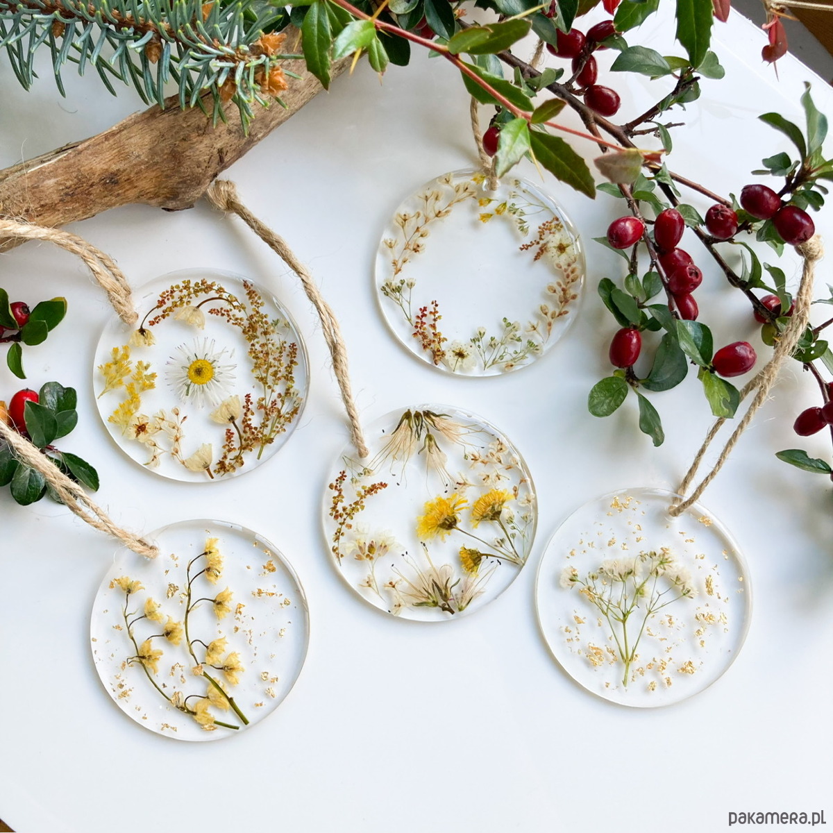 Niepowtarzalne, ręcznie robione bombki z pokrytymi żywicą suszonymi kwiatami. Zestaw zawiera 5 sztuk bombek wykonanych z pleksi (zatem nie da się ich stłuc). To świetny pomysł na niebanalny, wyjątkowy prezent- na życzenie klienta mogę dołączyć karteczkę z dedykacją.