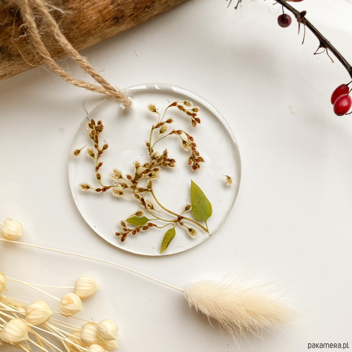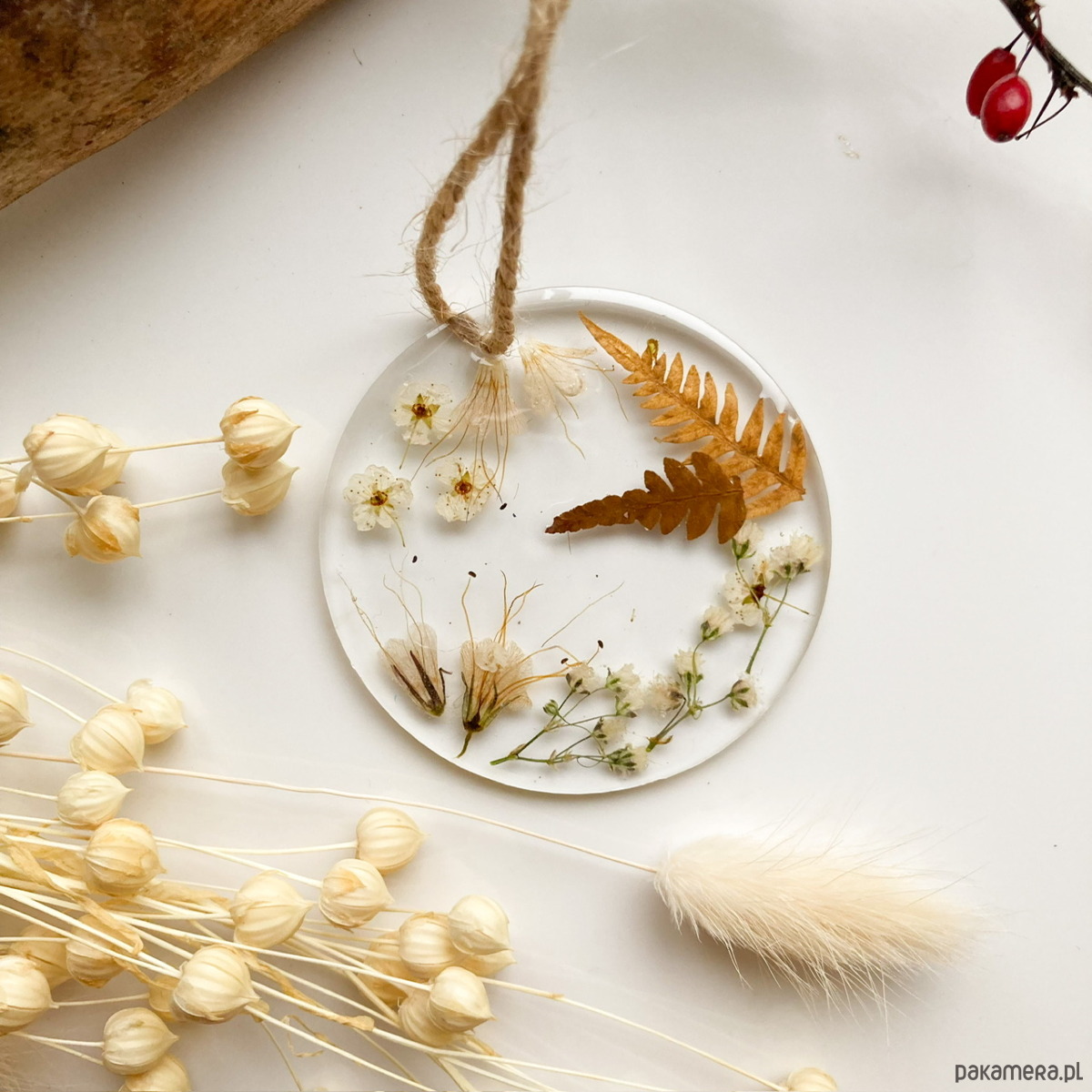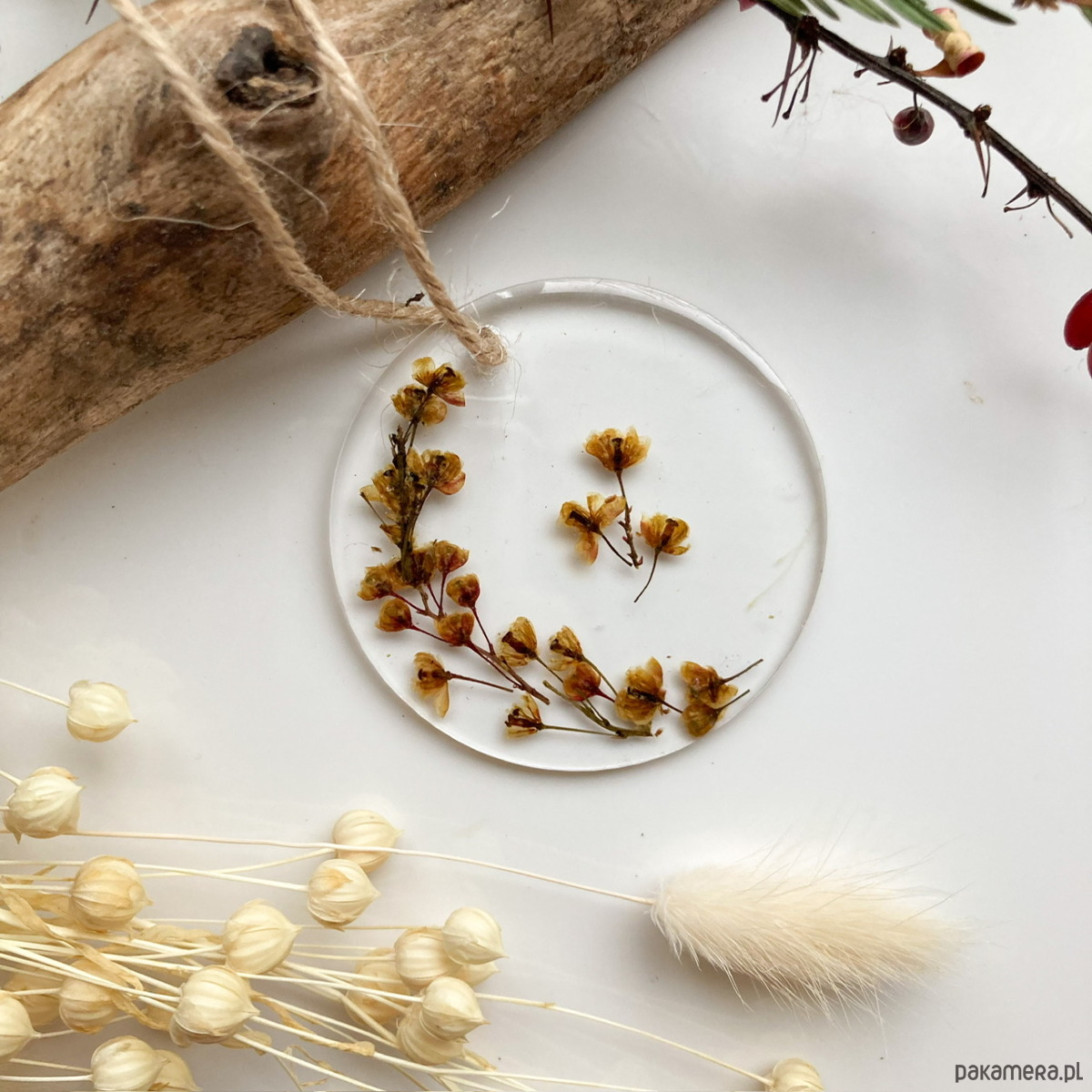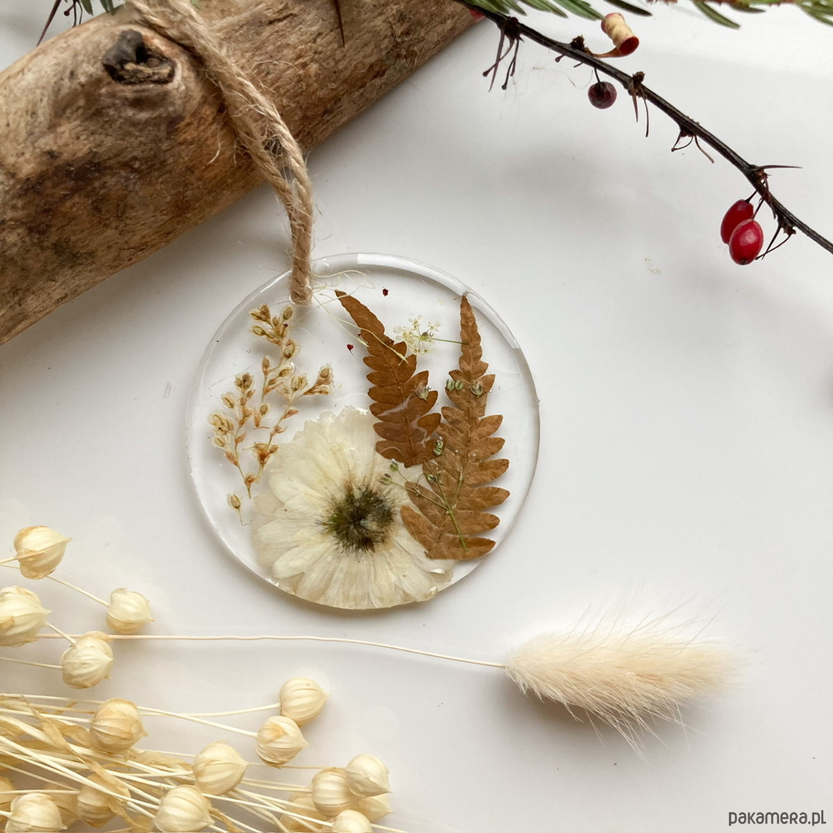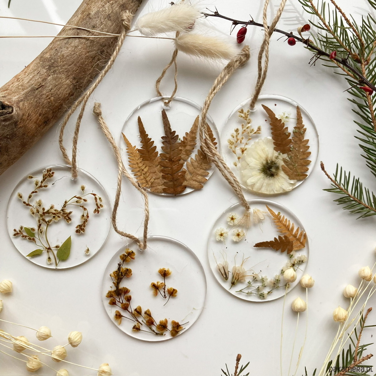 Niepowtarzalne, ręcznie robione bombki z pokrytymi żywicą suszonymi kwiatami. Zestaw zawiera 5 sztuk bombek wykonanych z pleksi (zatem nie da się ich stłuc). To świetny pomysł na niebanalny, wyjątkowy prezent- na życzenie klienta mogę dołączyć karteczkę z dedykacją.