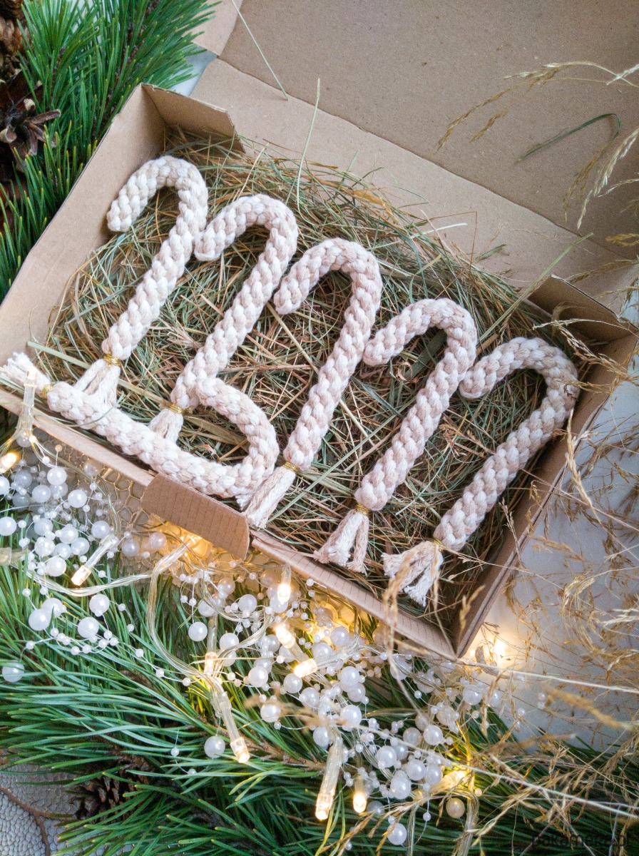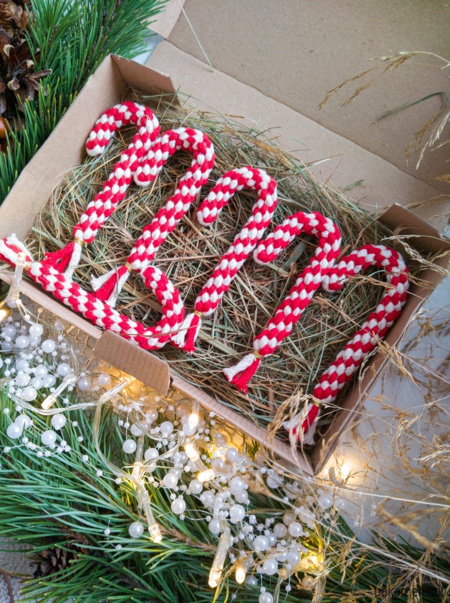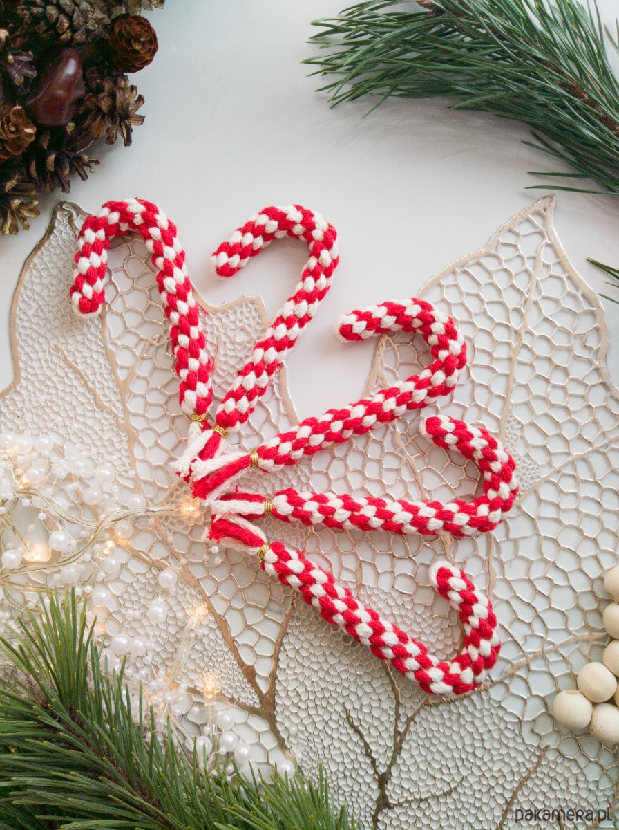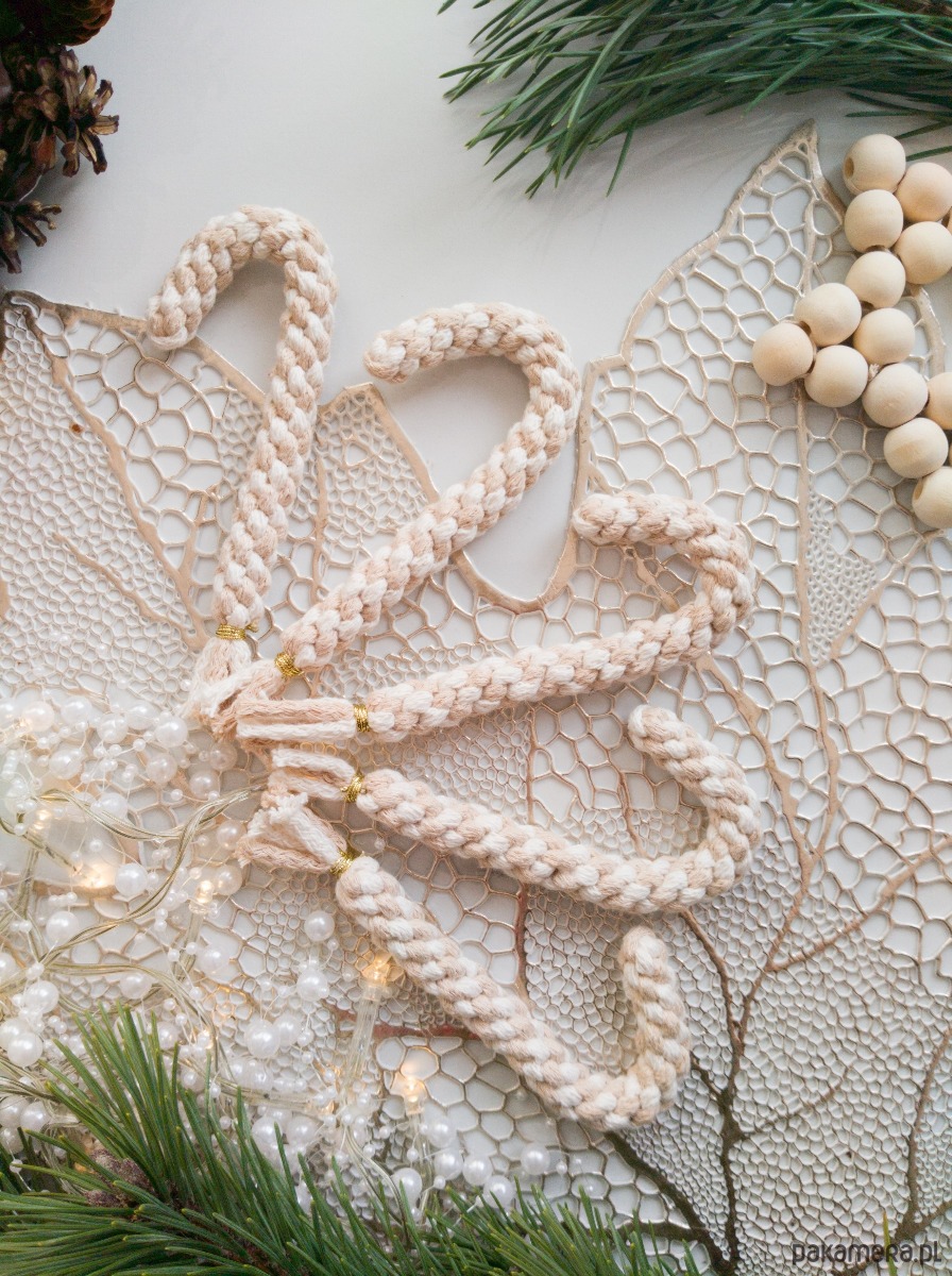 Zawieszki na choinkę cukrowe laski makrama ze sznurka