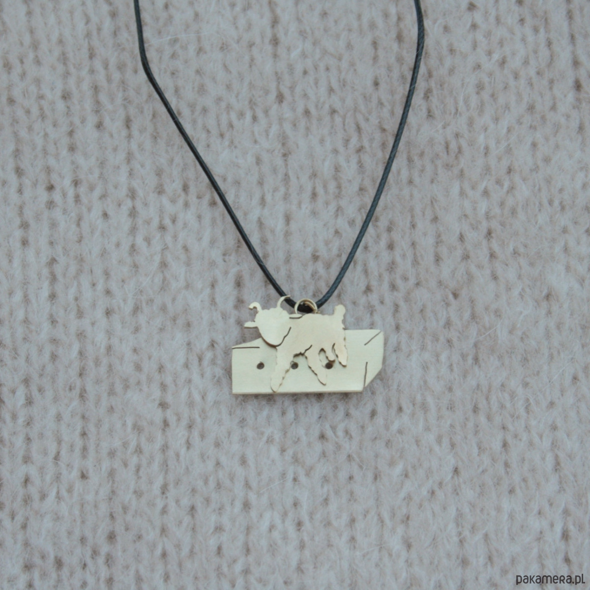Materiał: mosiądz, czarny sznurek jubilerski.