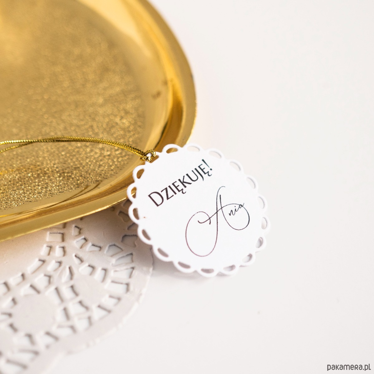 Zawieszkę można doczepić do własnoręcznie przygotowanych podarunków, np. woreczków ze słodkościami. Taki zestaw będzie nie tylko miłym upominkiem, ale też piękną ozdobą stołu podczas uroczystości.