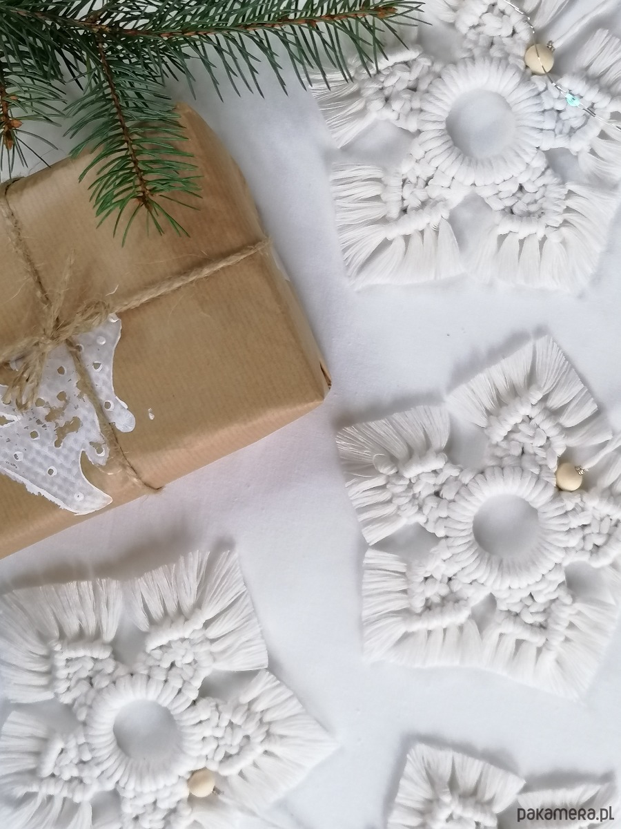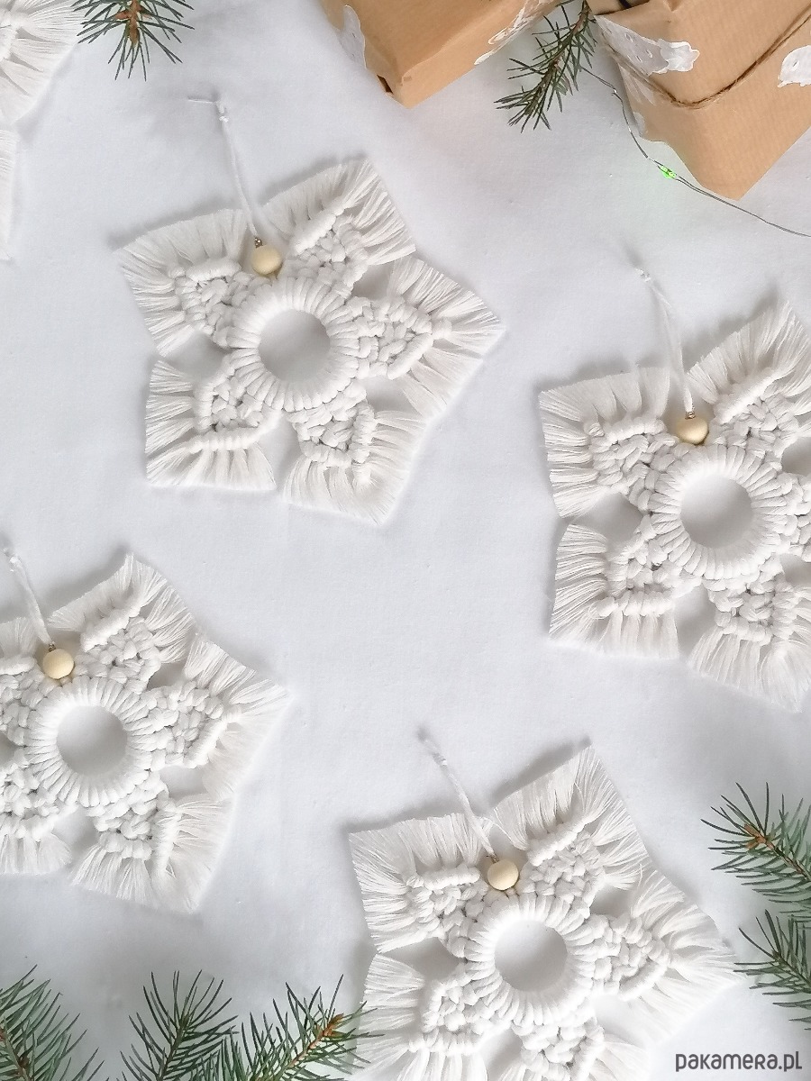 Zawieszki śnieżynki ręcznie plecione, ozdoba świąteczna
