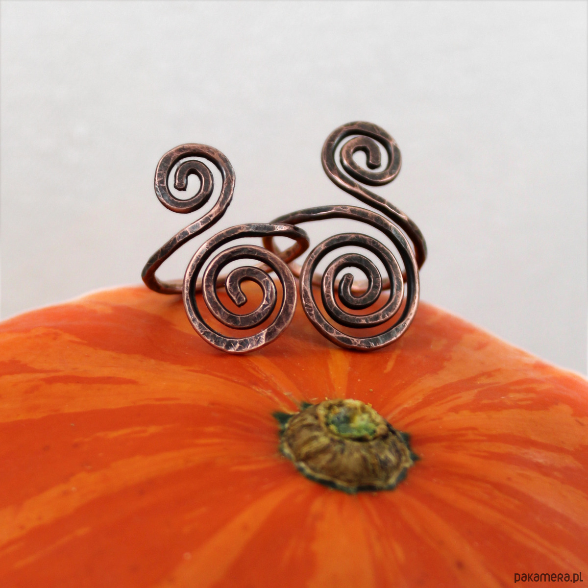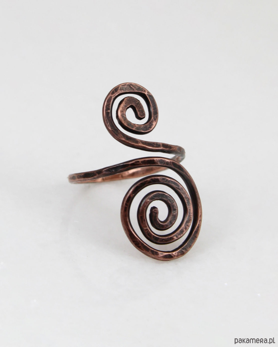 Miedziany pierścionek luźno inspirowany dawną biżuterią słowiańską.
