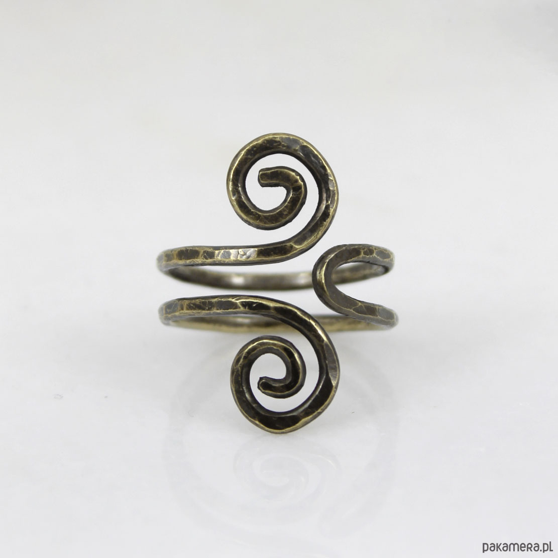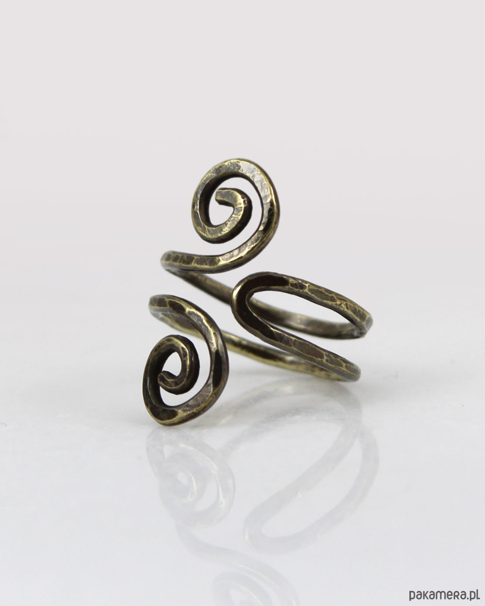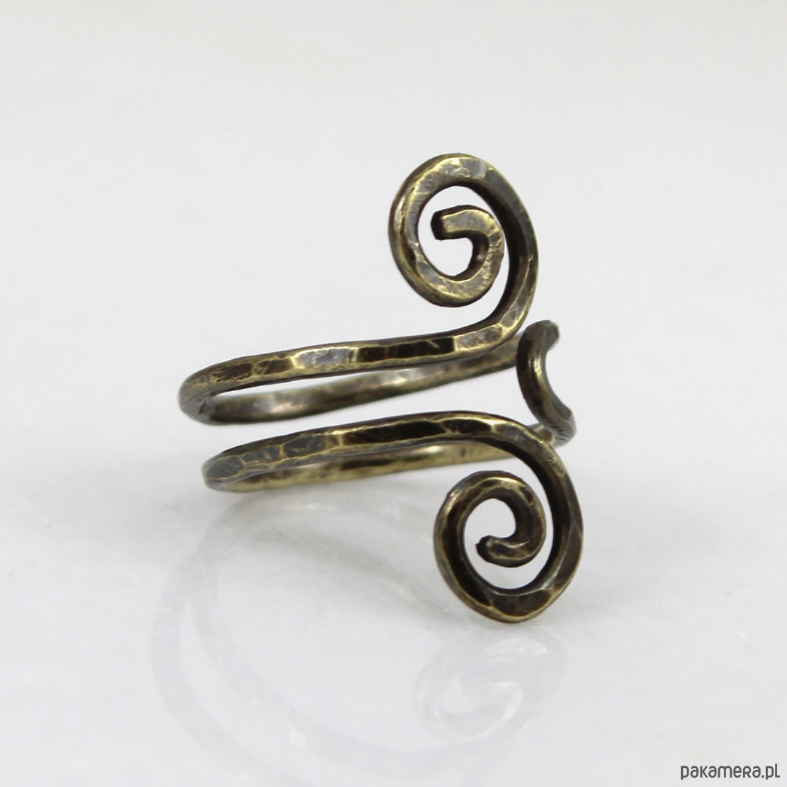 Mosiężny pierścionek luźno inspirowany dawną biżuterią słowiańską.