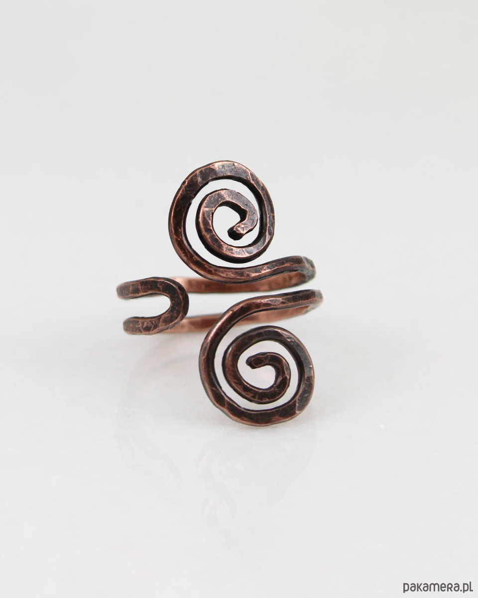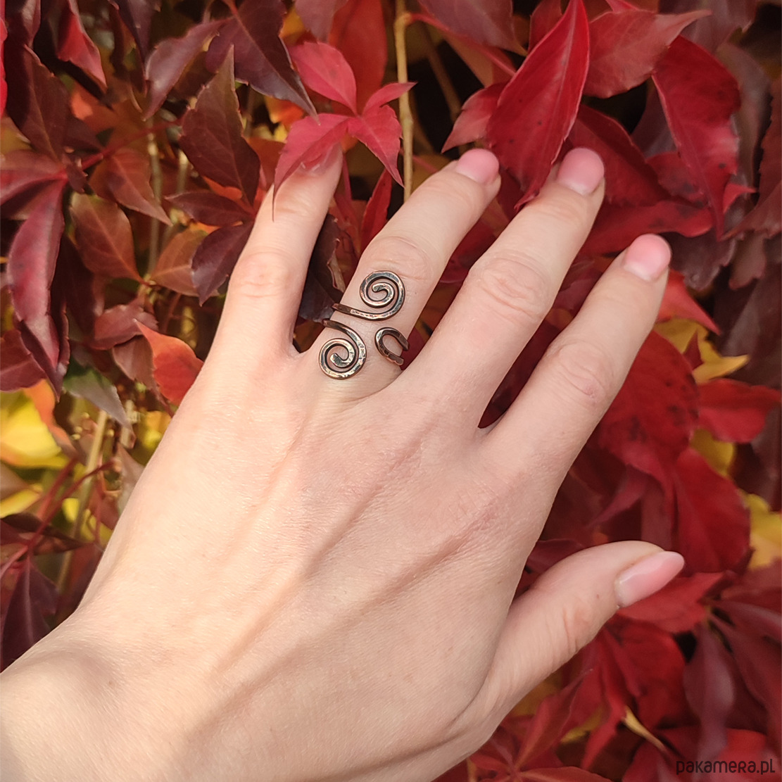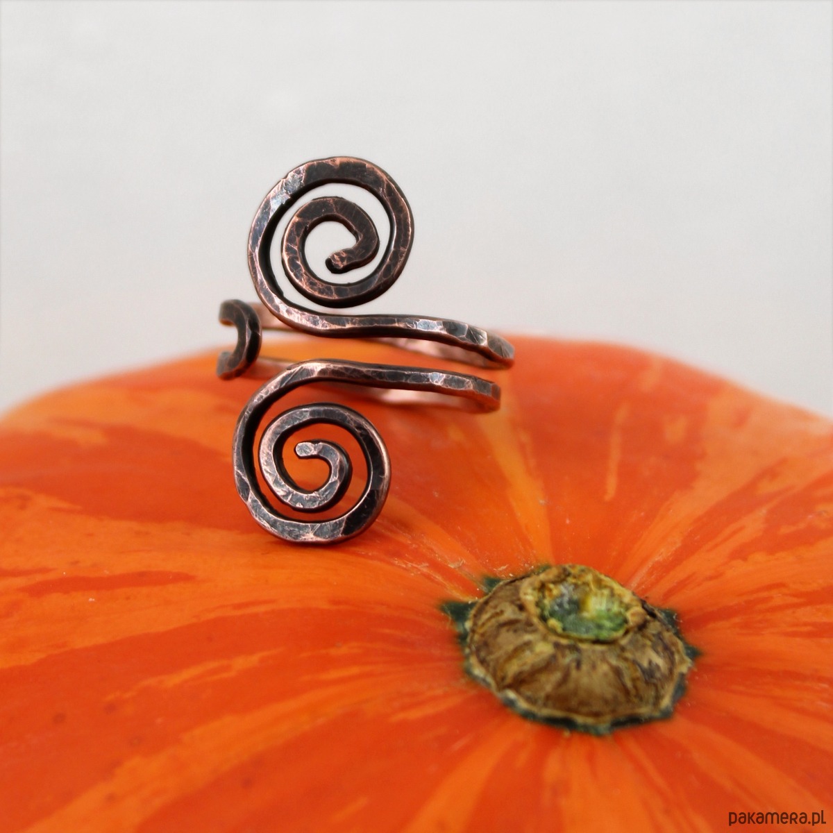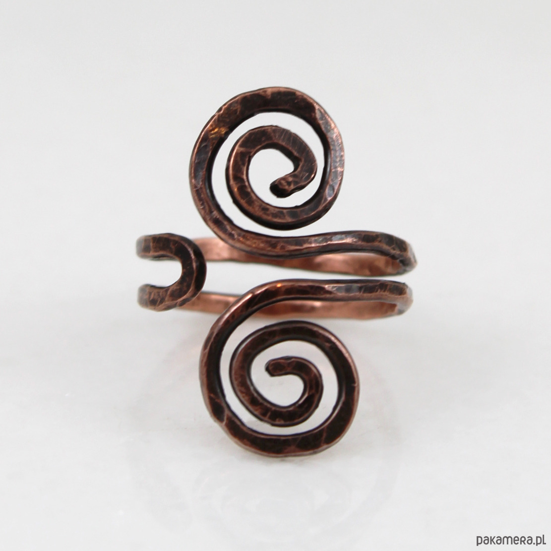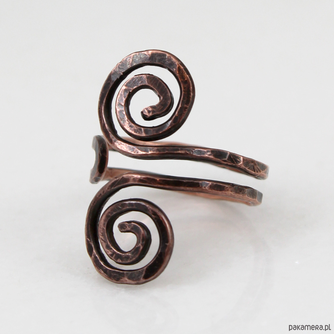 Miedziany pierścionek luźno inspirowany dawną biżuterią słowiańską.