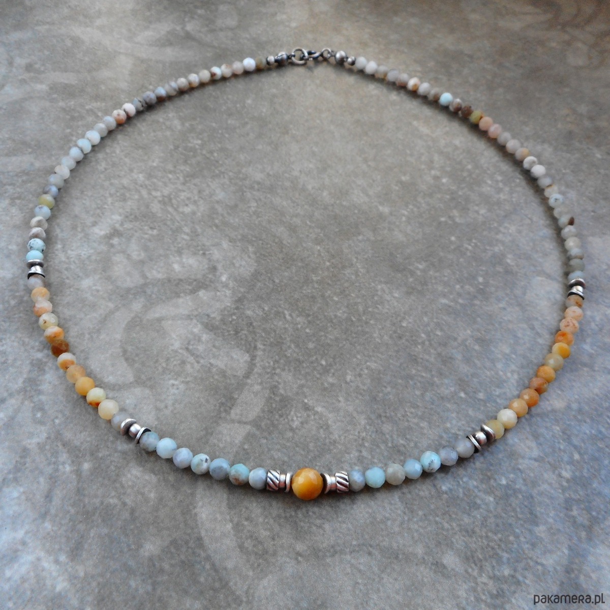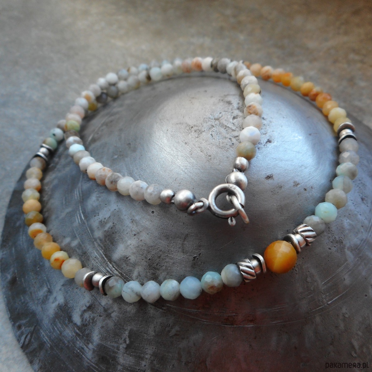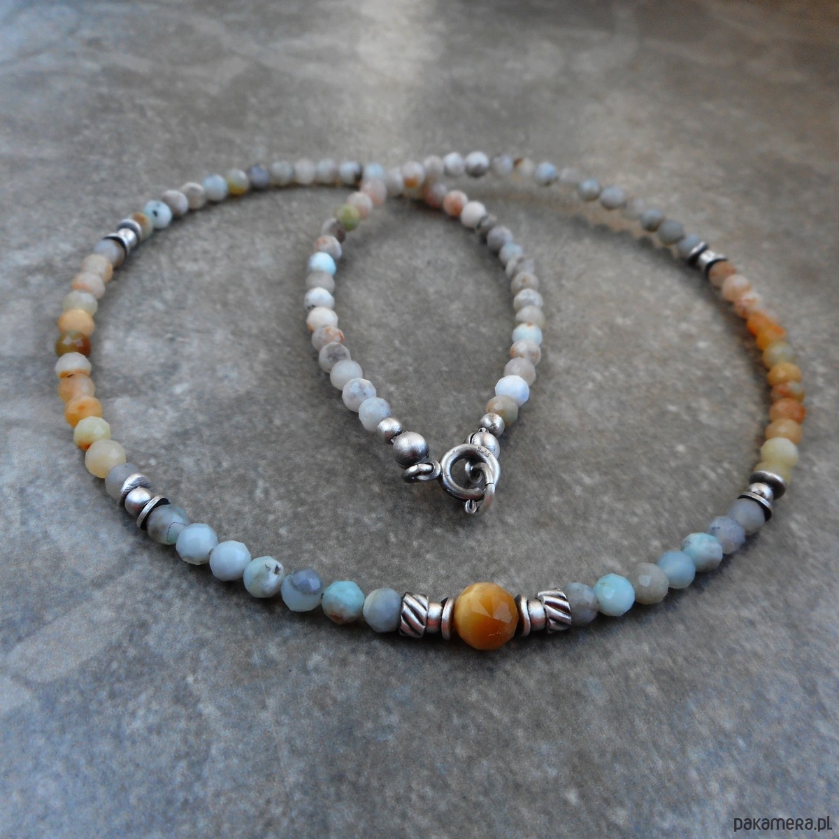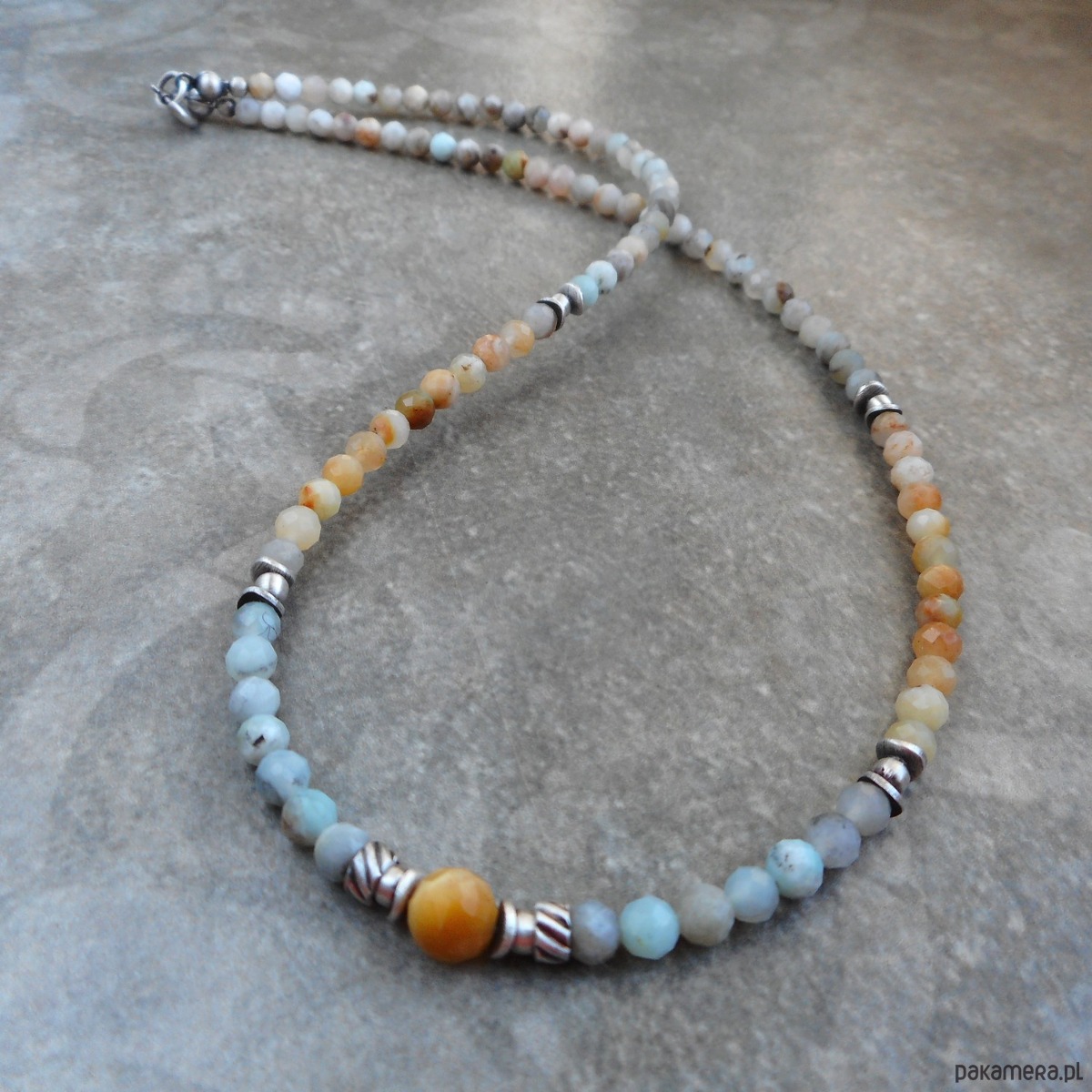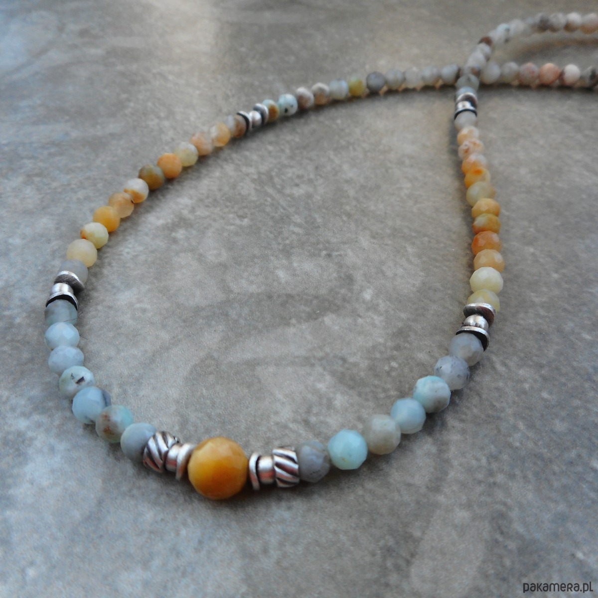 Piękny, krótki naszyjnik wykonany ze szlachetnego srebra i kamieni naturalnych; w stonowanych odcieniach, minimalistyczny i elegancki