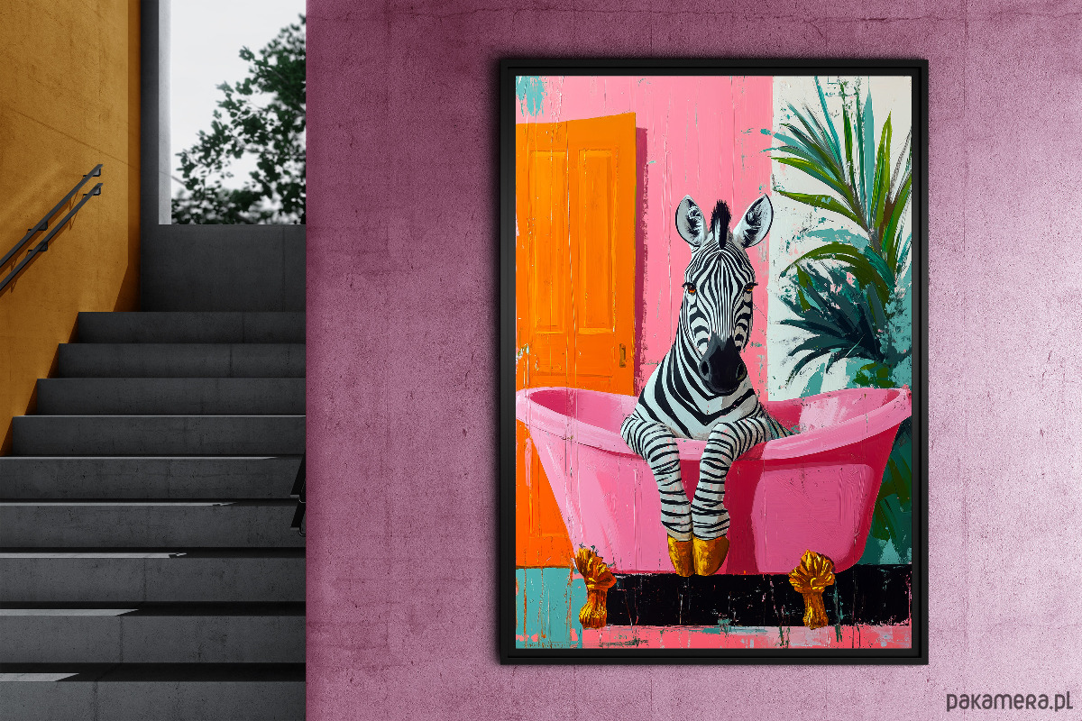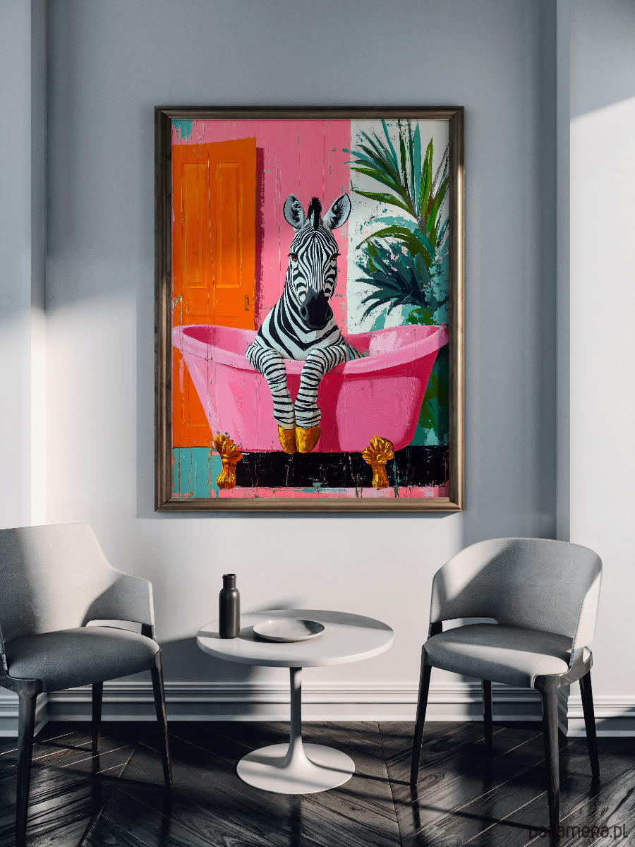 Zebra bierze kąpiel - grafika na plakacie
