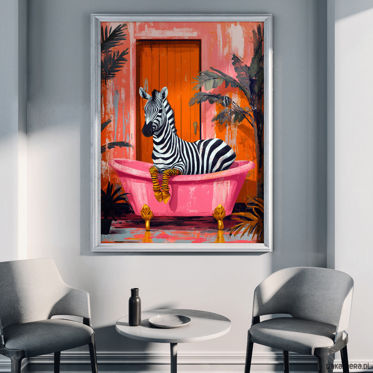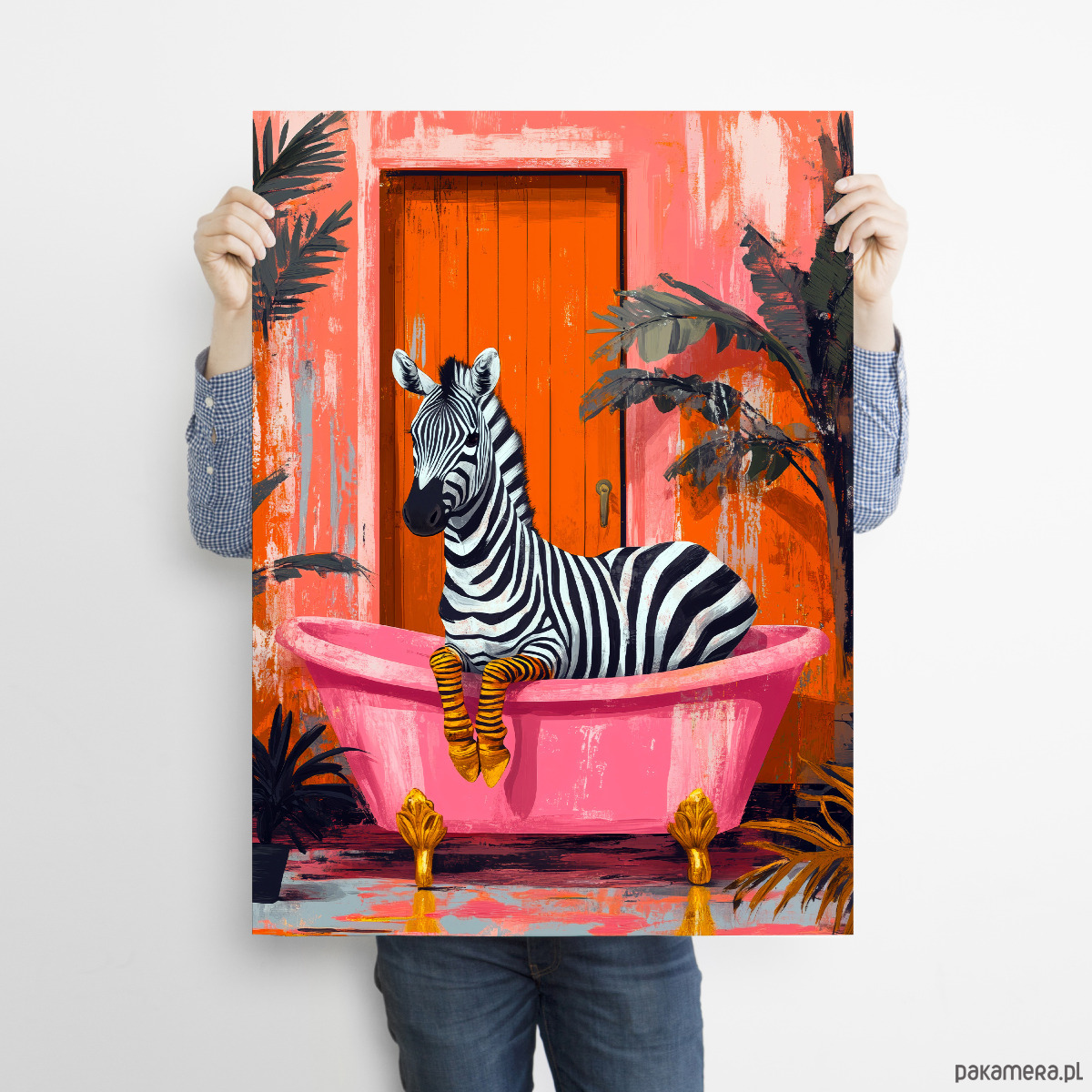 Zebra w różowej wannie - grafika na plakacie