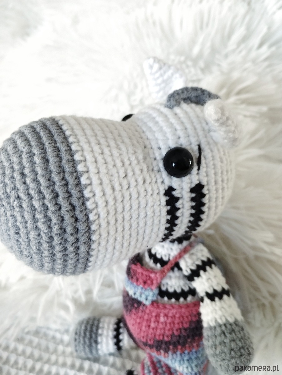Szydełkowa zebra ze zdejmowanymi spodenkami to urocza zabawka dla każdego malucha.