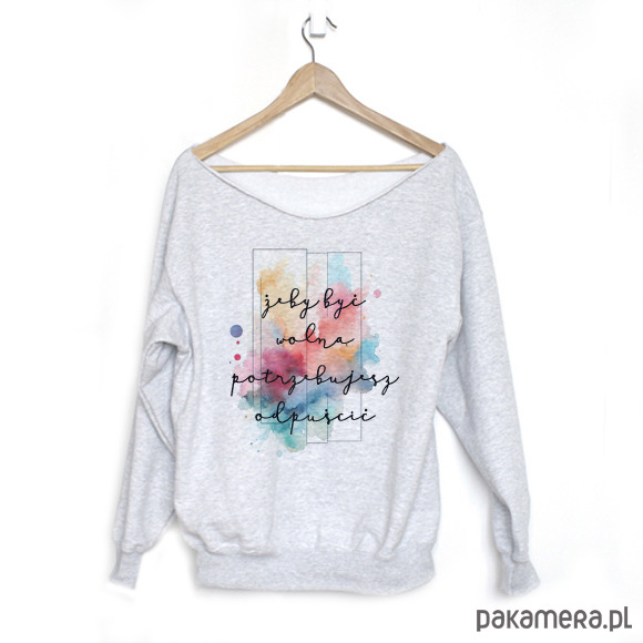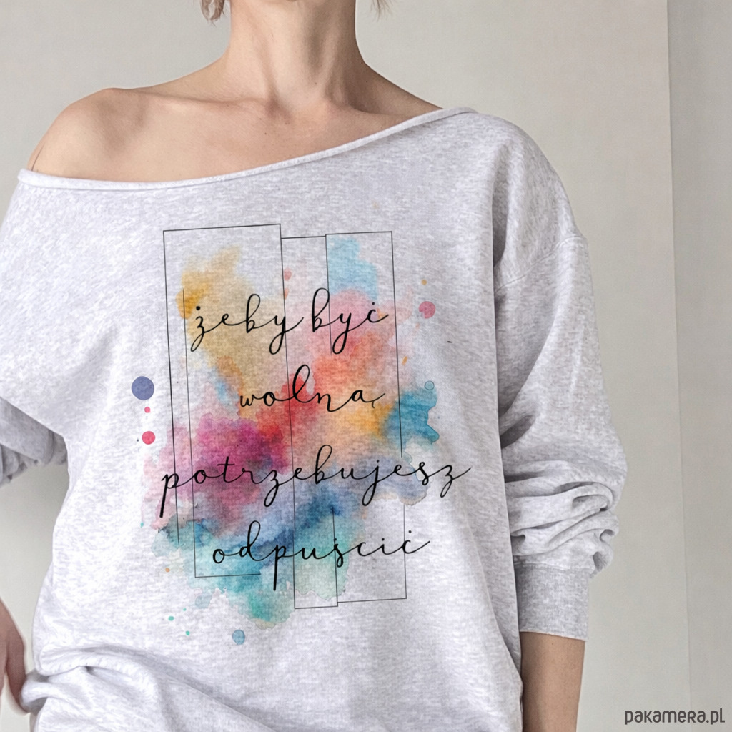 Bluza z akwarelkowym wzorem i napisem.