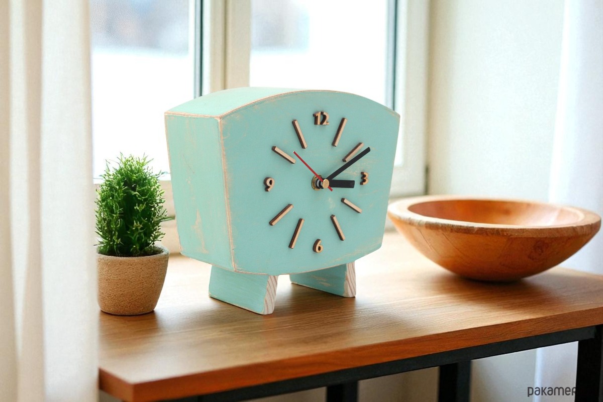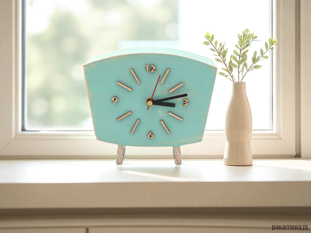 Ten niewielki, zgrabny zegar biurkowy w kolorze miętowym to wyjątkowy element dekoracyjny, który wnosi do wnętrza klimat minionych dekad. Świetnie sprawdzi się jako oryginalny prezent lub stylowy akcent na biurku, półce czy stoliku nocnym.