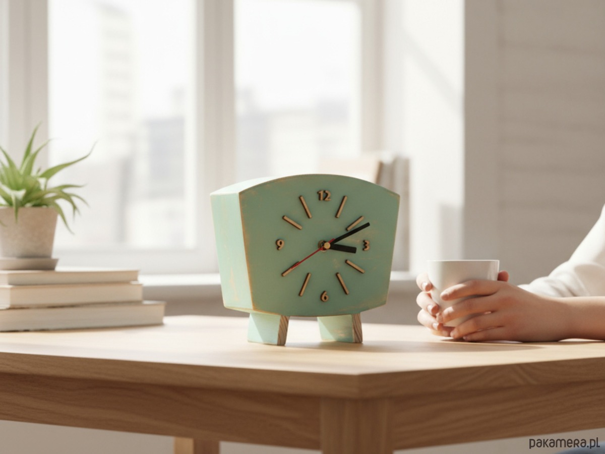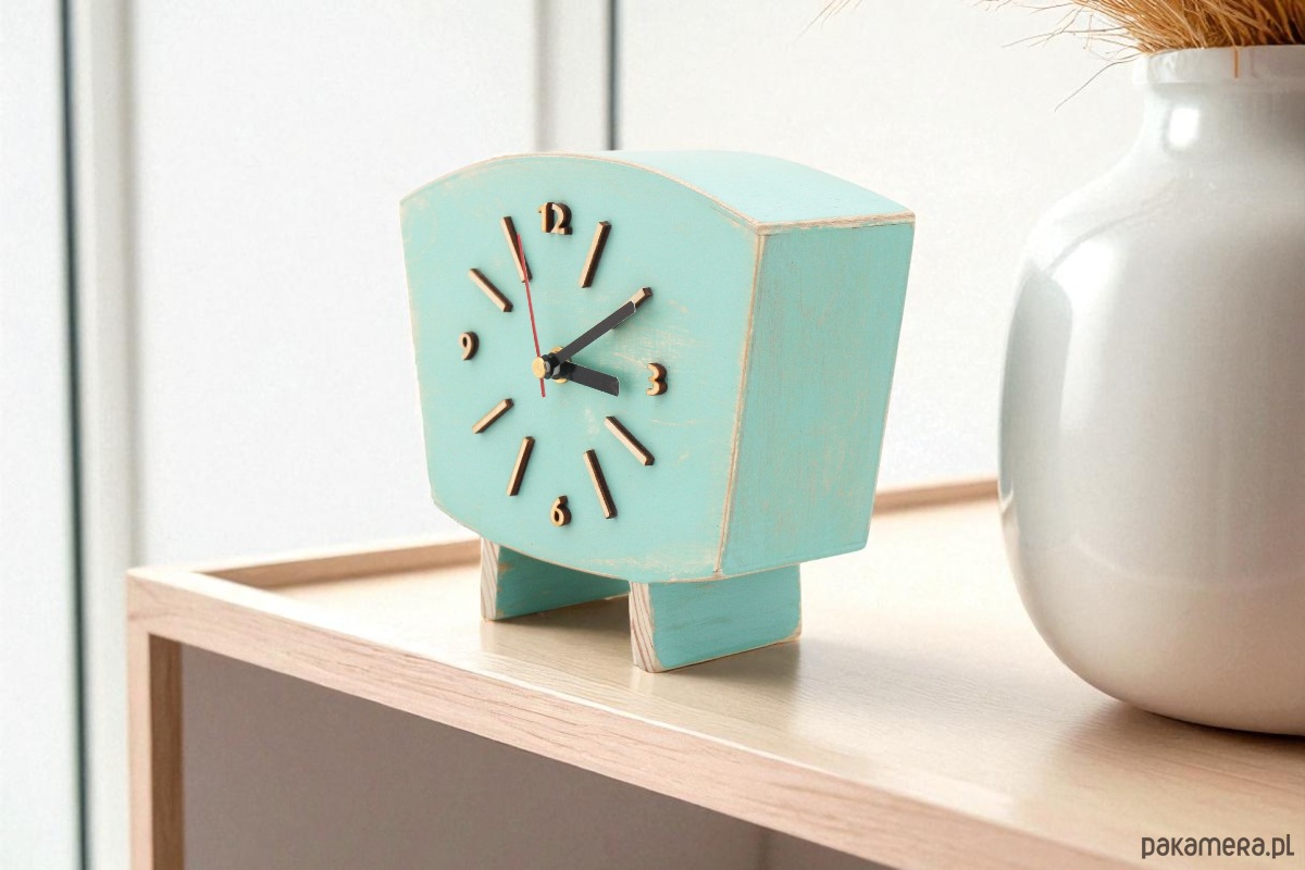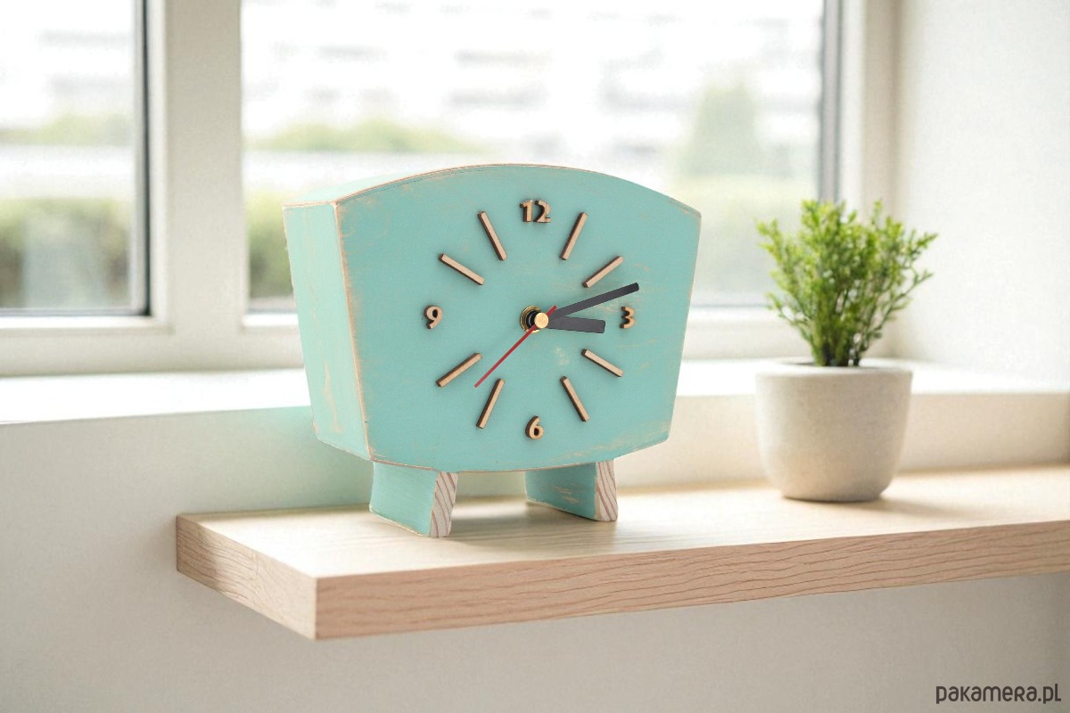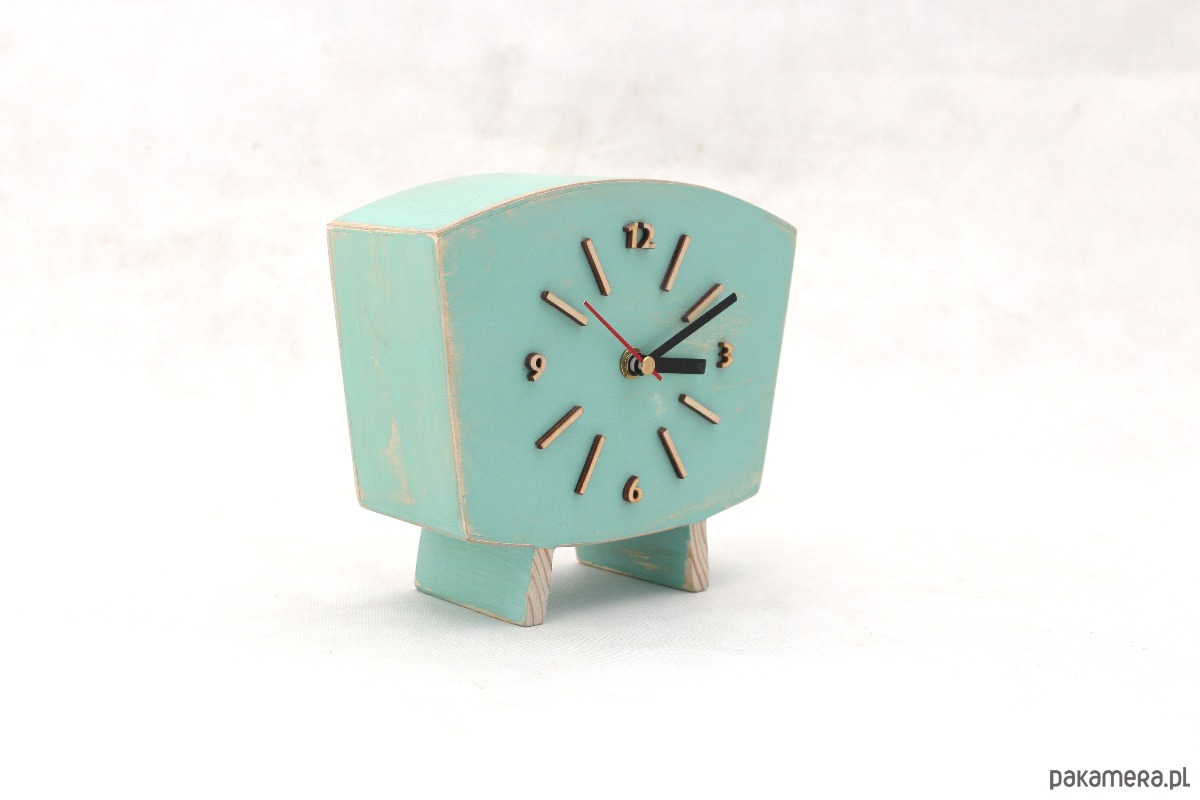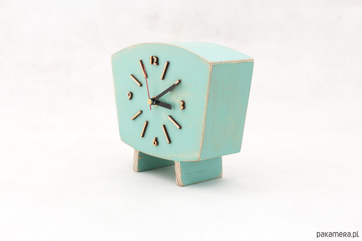 Zegar biurkowy drewniany- cichy mechanizm - miętowy