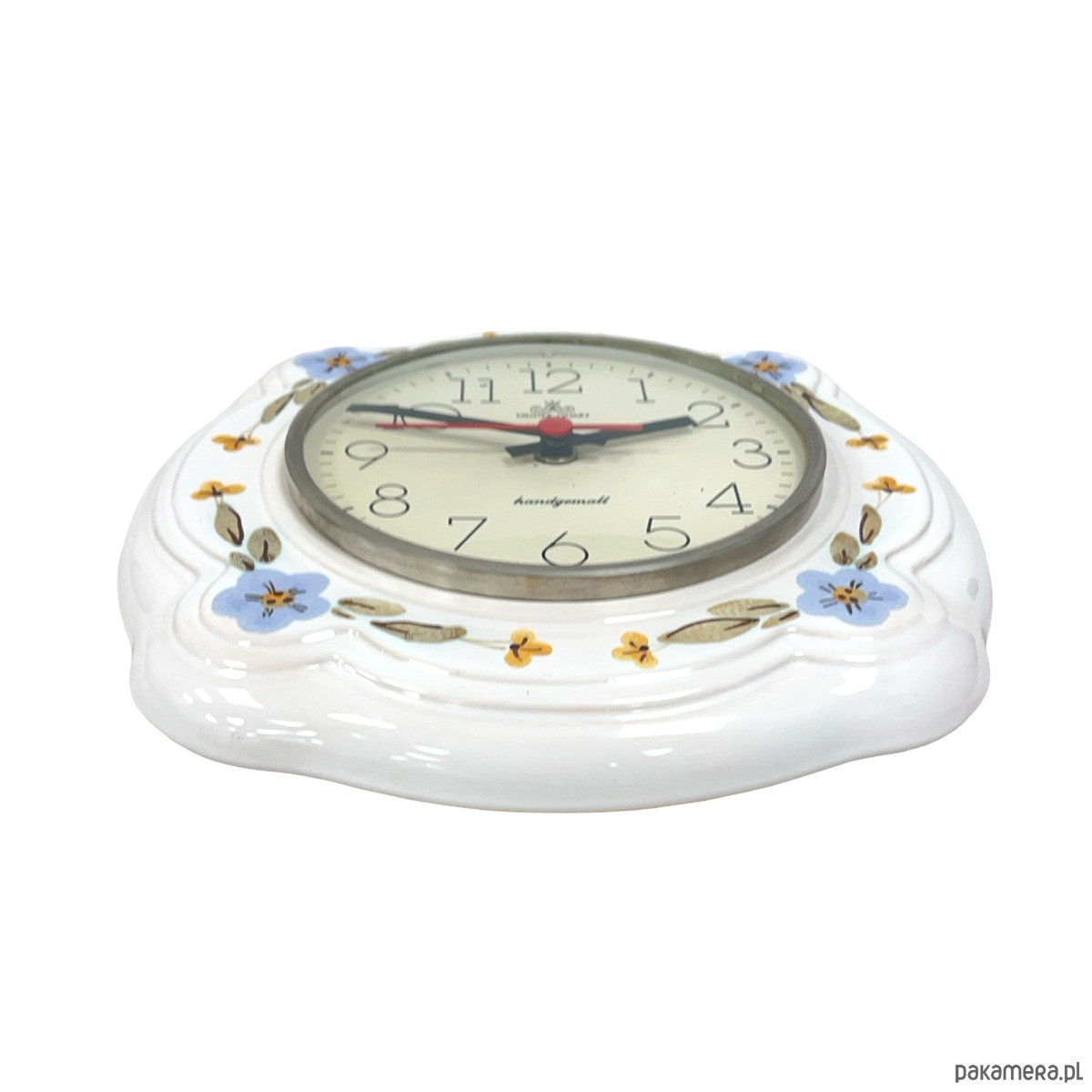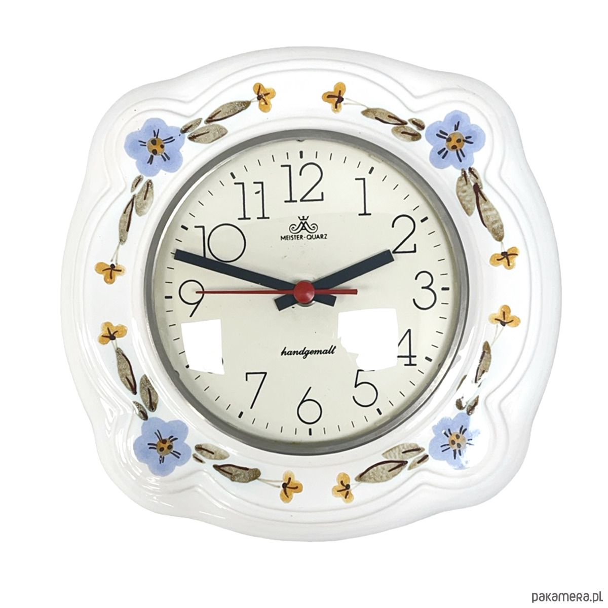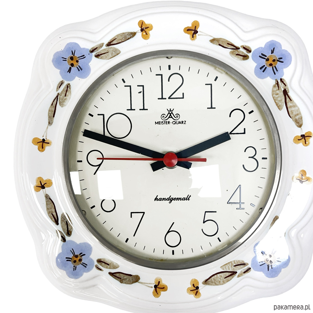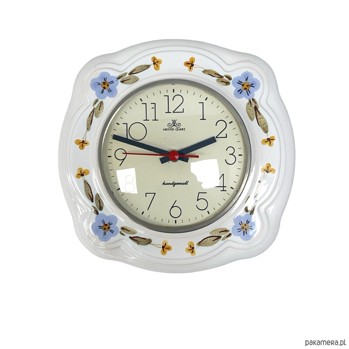 Zegar Ścienny Ceramiczny Meister-Quarz Ręcznie Malowany Niemcy Lata 70.
