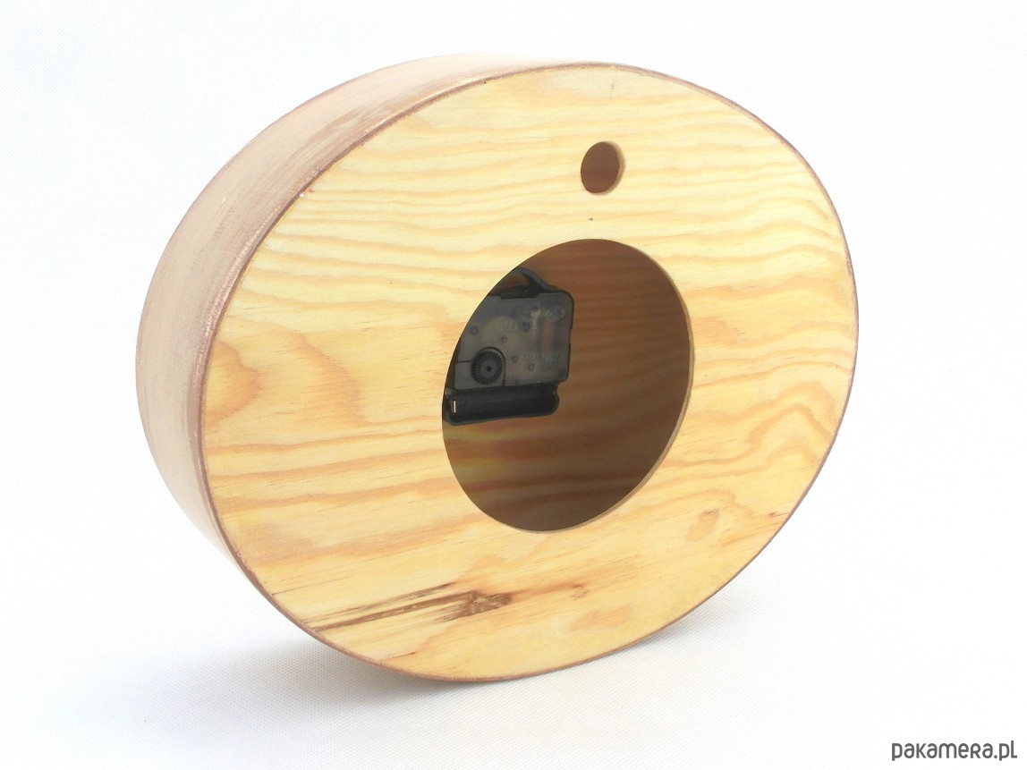 Zamontowany mechanizm kwarcowy zasilany baterią AA – cichy, bez tykania.
