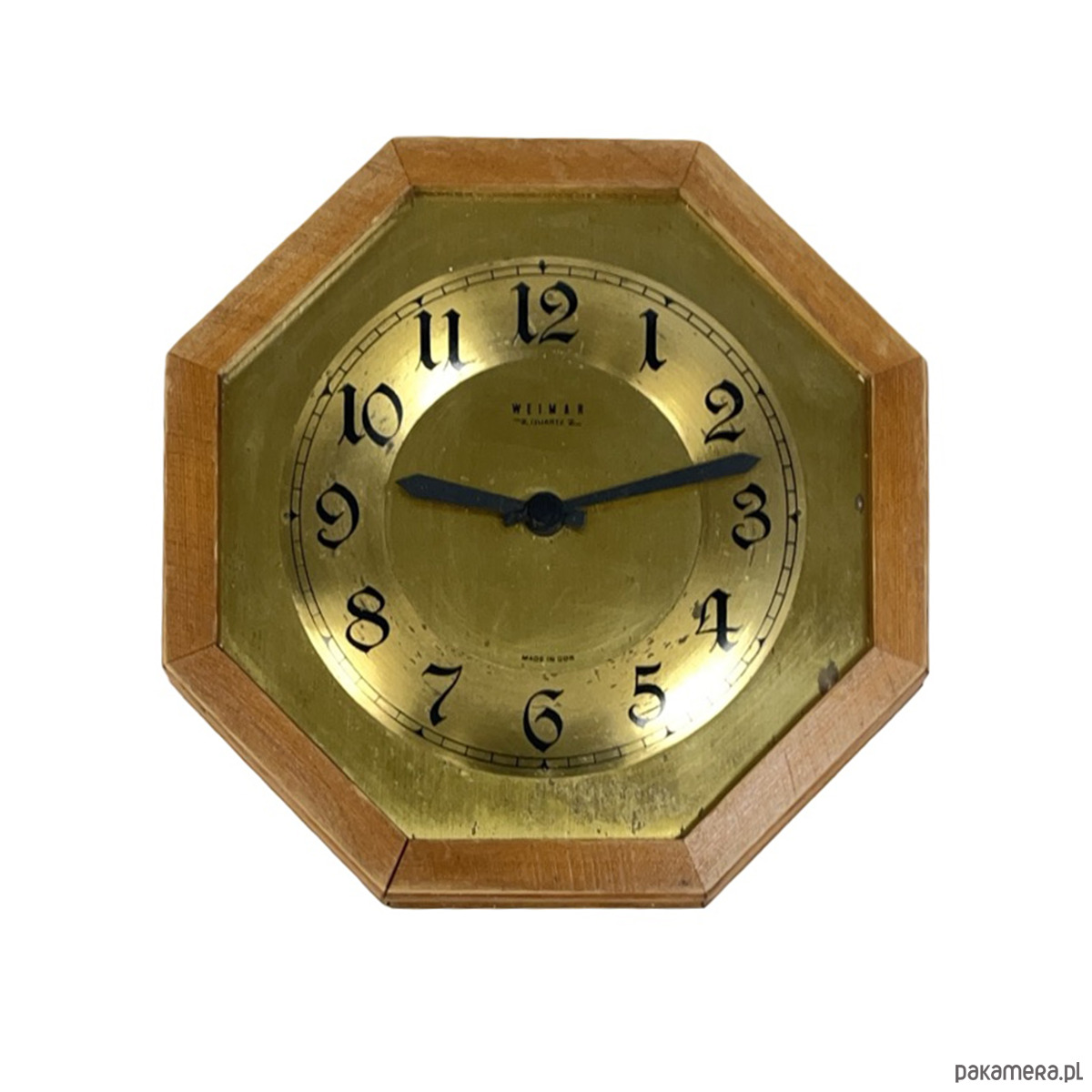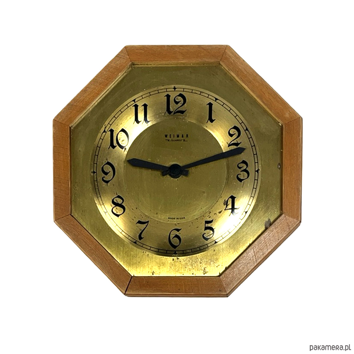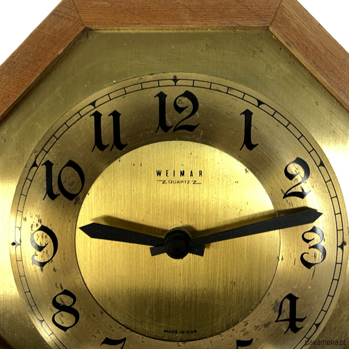 Zegar ścienny Weimar, Ośmiokątny, Mosiądz i Drewno, Niemcy lata 70.