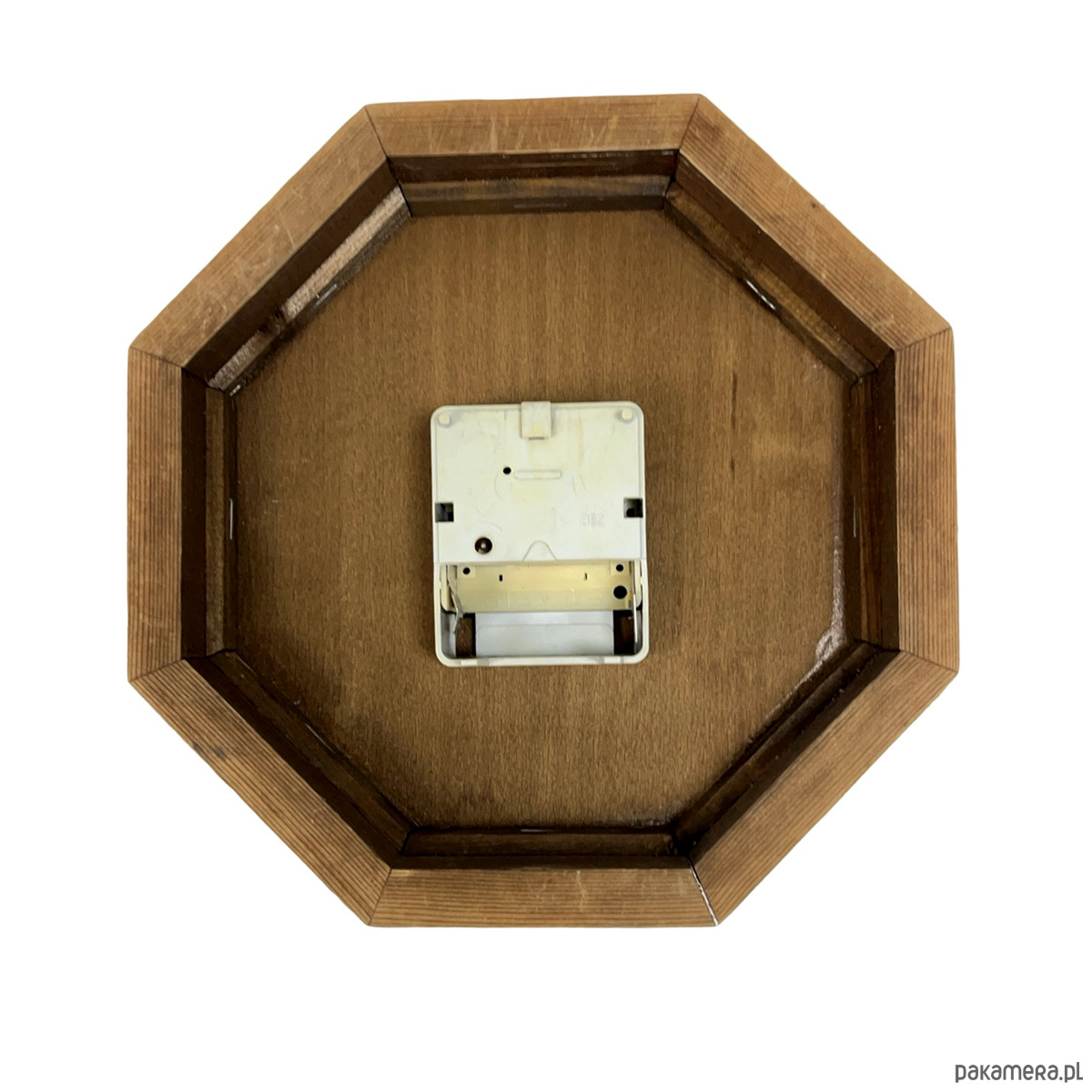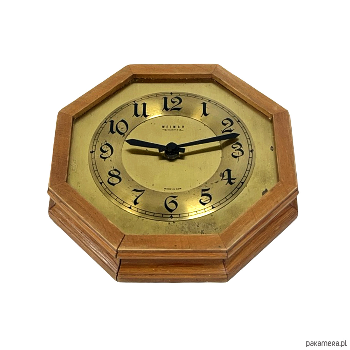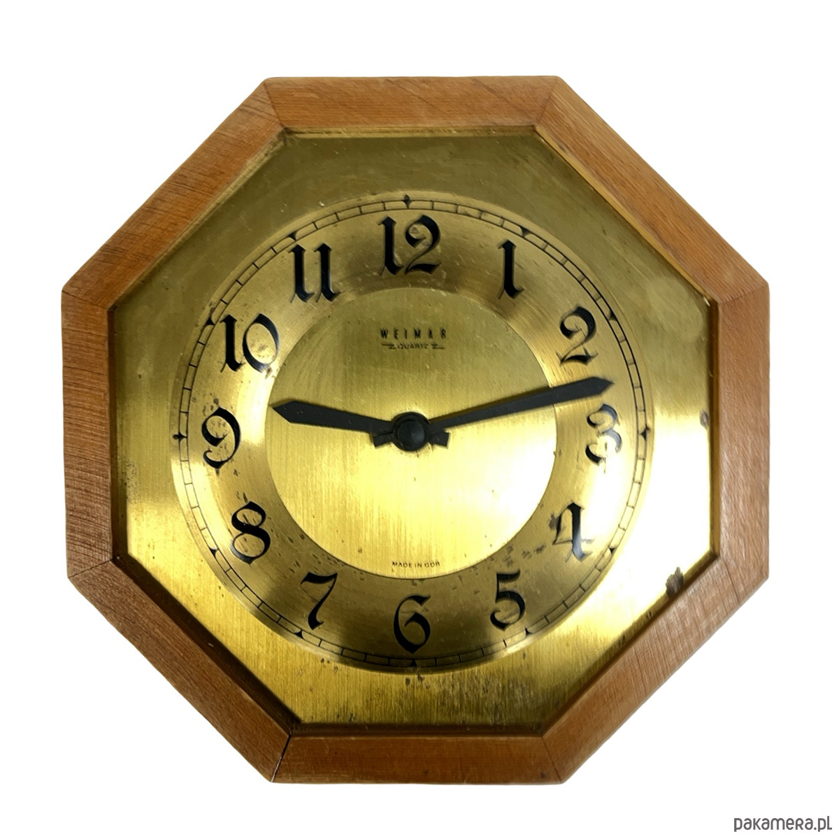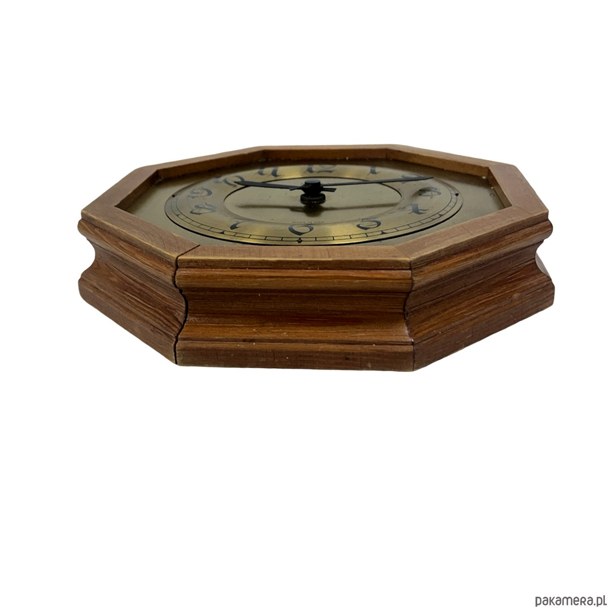 Zegar ścienny Weimar, Ośmiokątny, Mosiądz i Drewno, Niemcy lata 70.