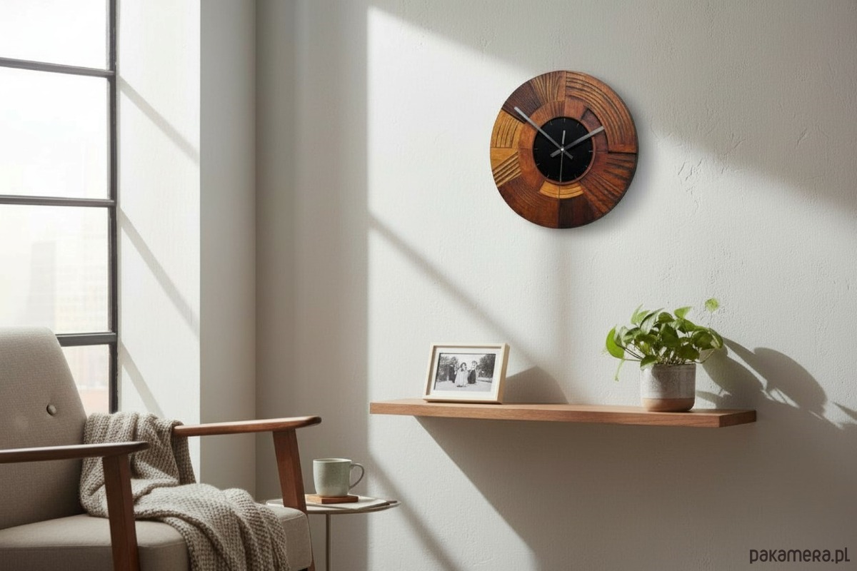 Zegar ścienny z Drewna - Cichy Mechanizmp