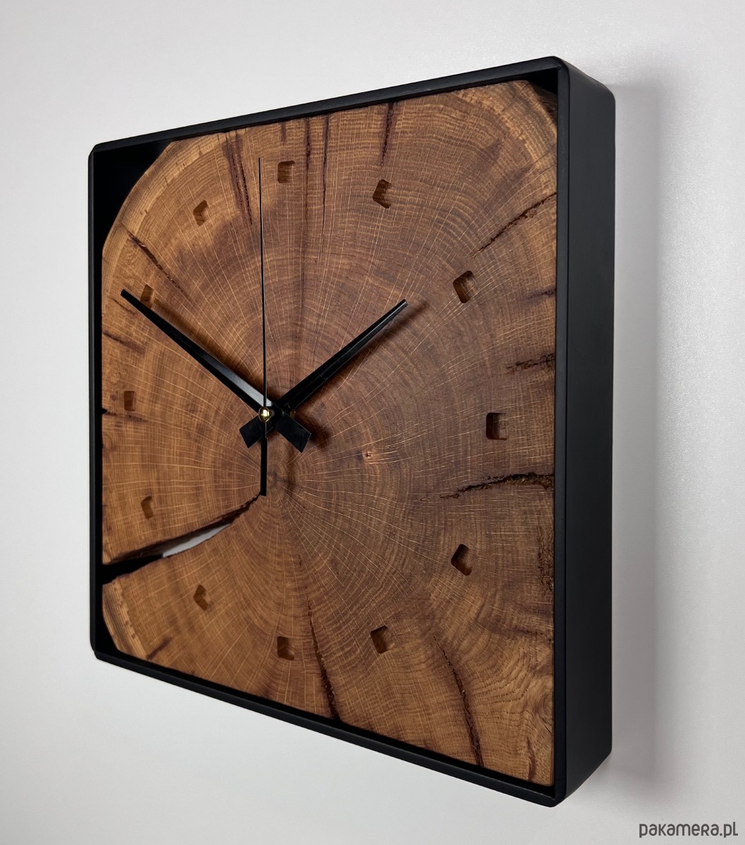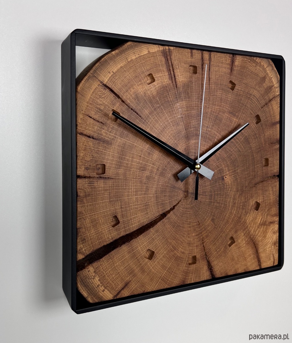 Ręcznie wykonany zegar ścienny z litego dębu, osadzony w minimalistycznej stalowej ramie, to połączenie naturalnego drewna i nowoczesnej formy. Każdy egzemplarz powstaje z wyselekcjonowanego dębu, dzięki czemu zachowuje unikalne usłojenie i niepowtarzalny charakter.