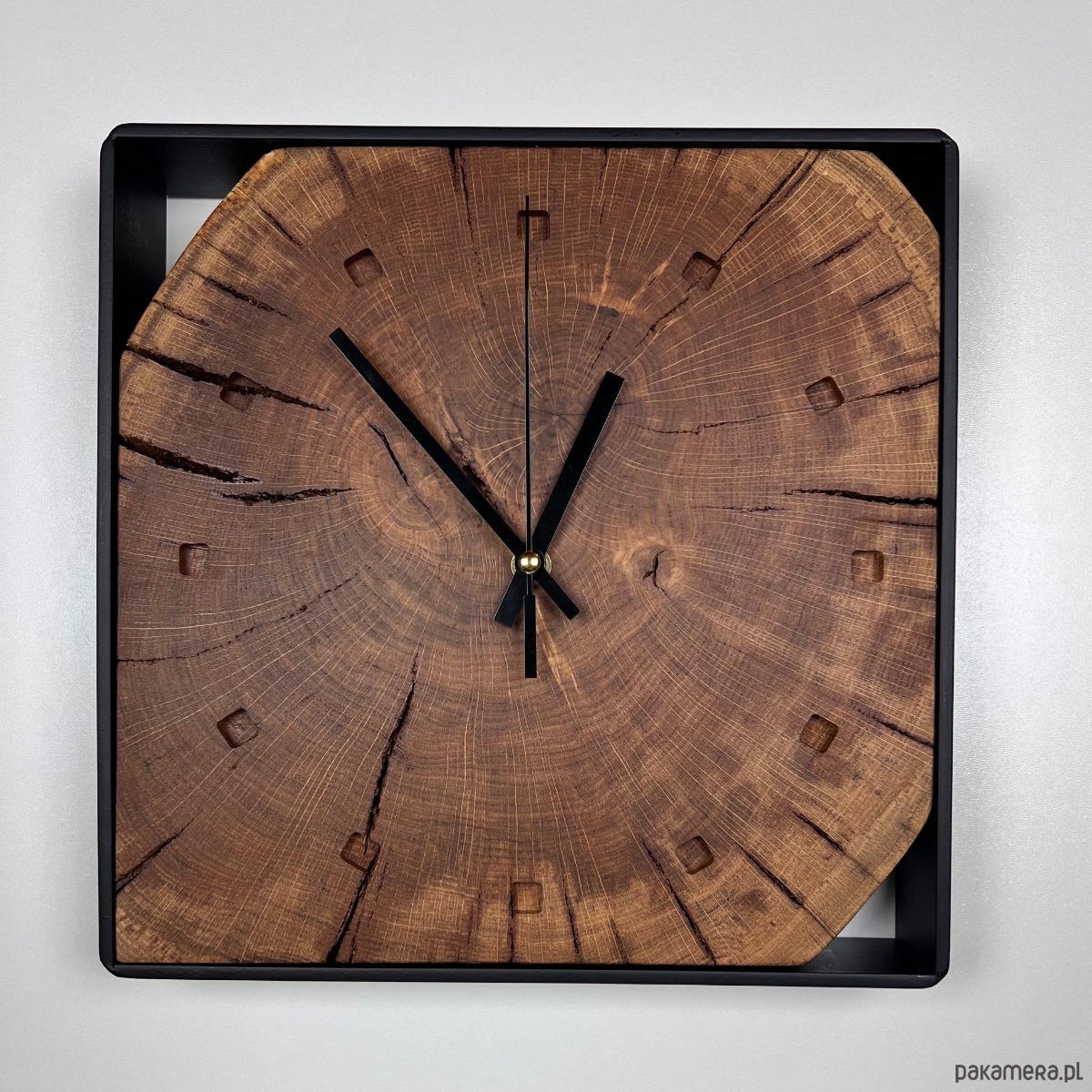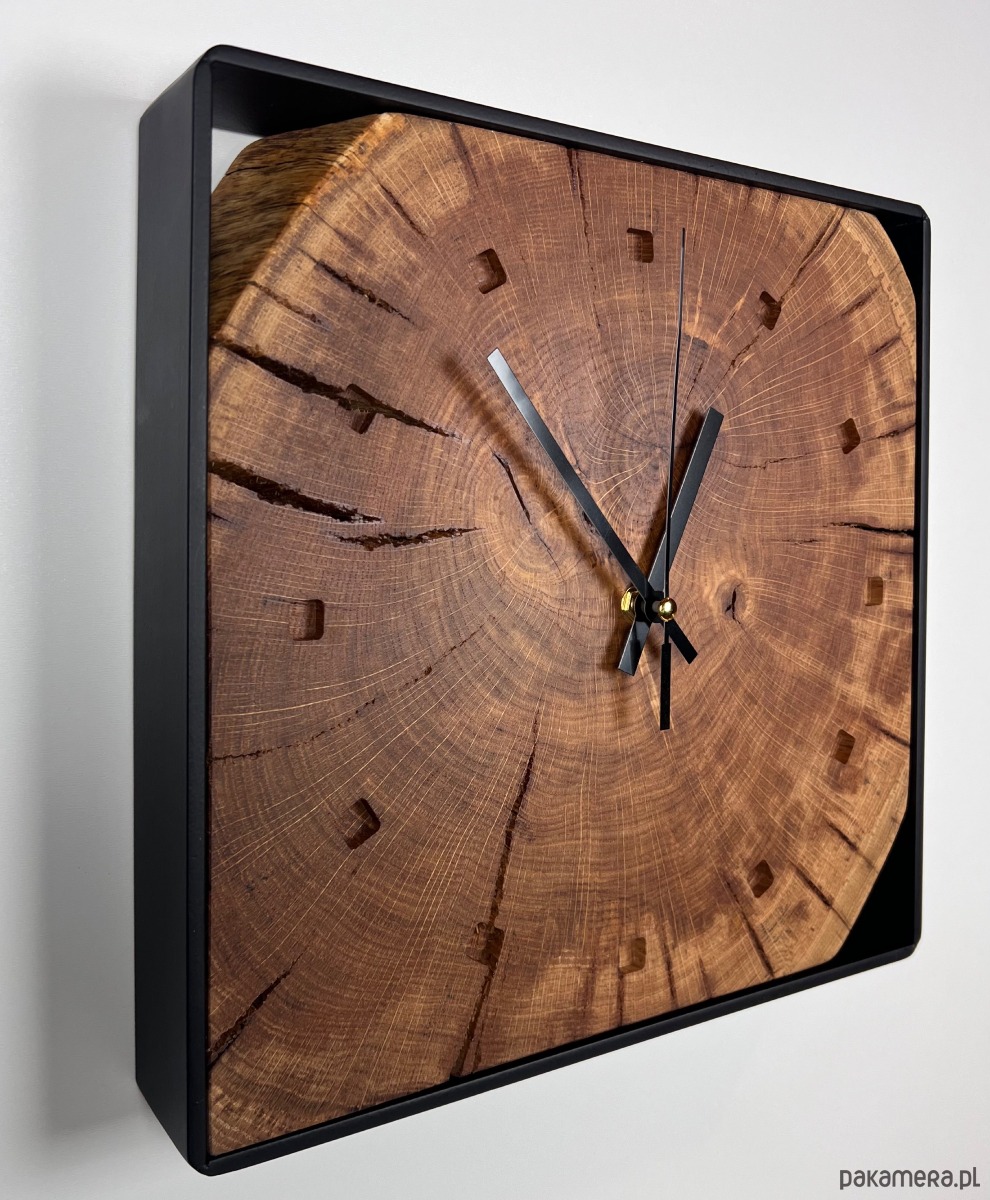 Ręcznie wykonany zegar ścienny z litego dębu, osadzony w minimalistycznej stalowej ramie, to połączenie naturalnego drewna i nowoczesnej formy. Każdy egzemplarz powstaje z wyselekcjonowanego dębu, dzięki czemu zachowuje unikalne usłojenie i niepowtarzalny charakter.