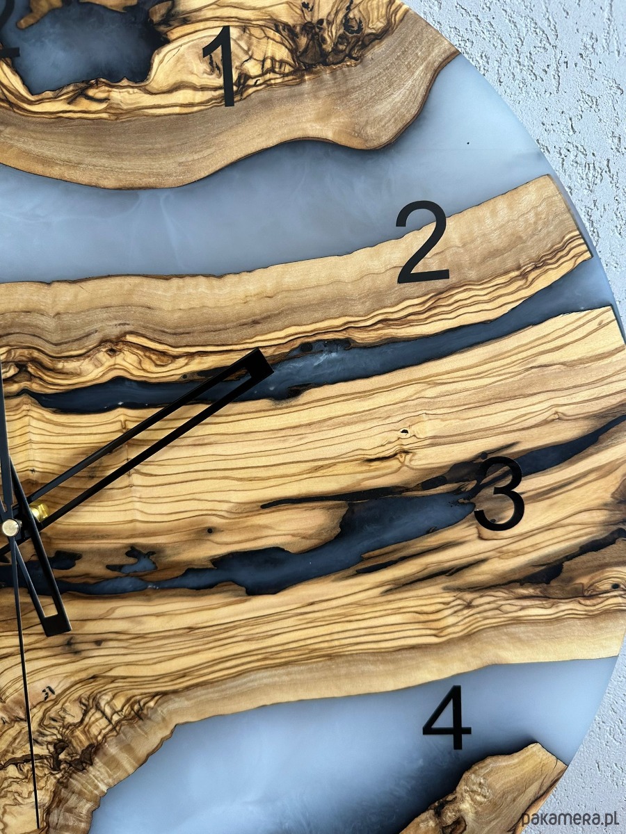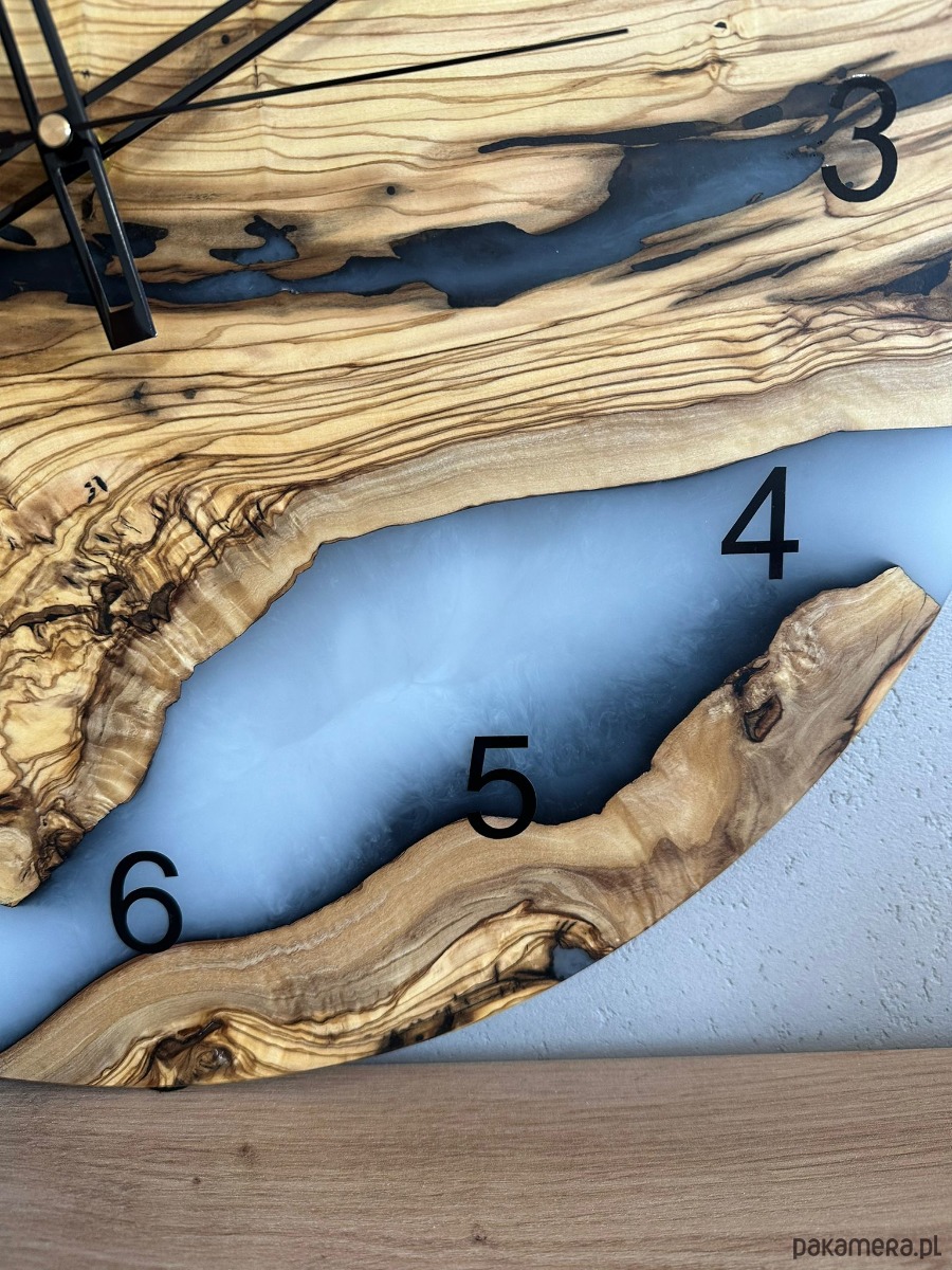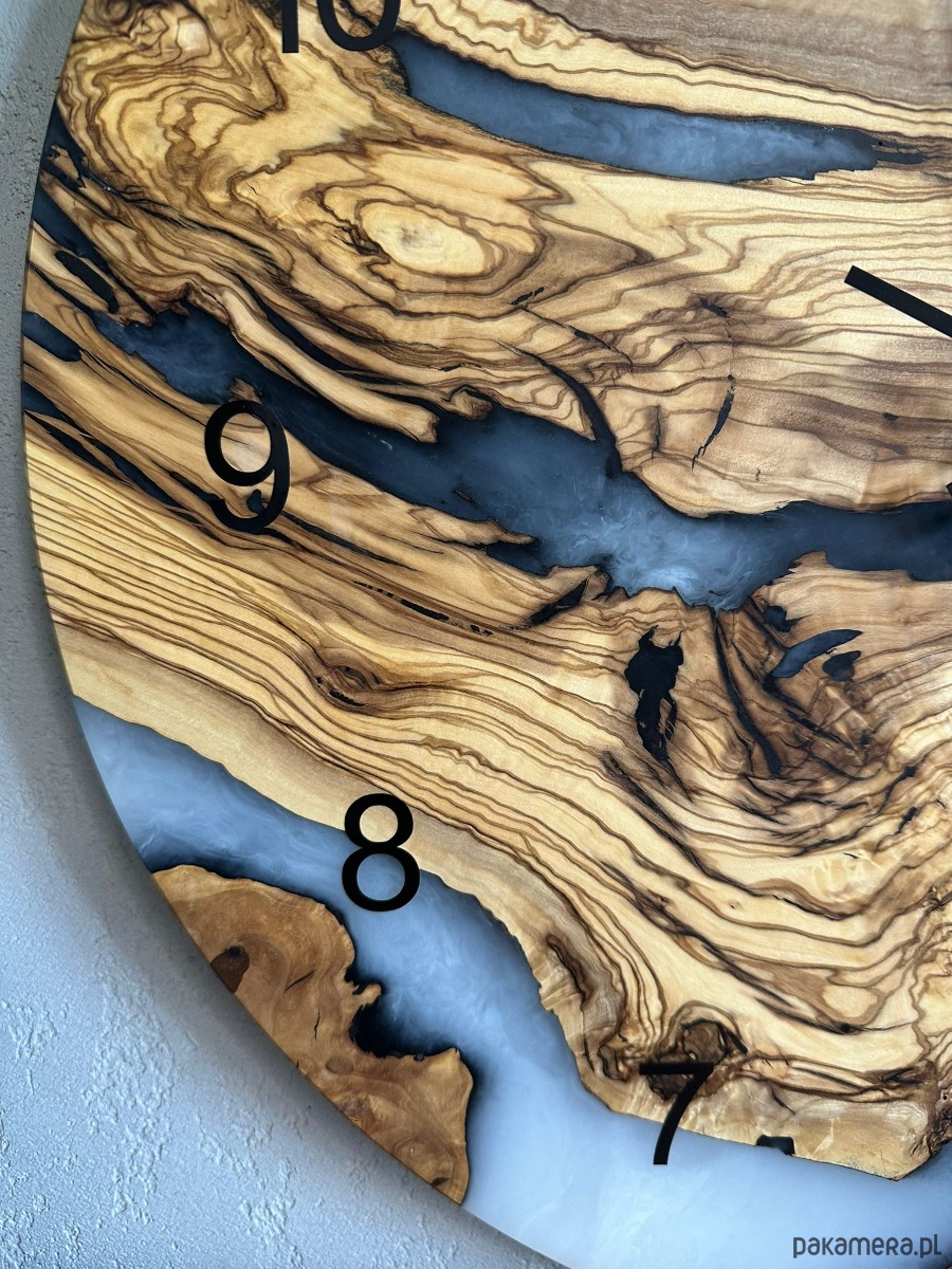 Do tworzenia niepowtarzalnych modeli zazwyczaj wykorzystuje drewno oliwne, ale także mogę zaproponować ci zegar z następujących kawałków drewna: czarny dąb, topola, orzech włoski, akacja, plastry z akacji.