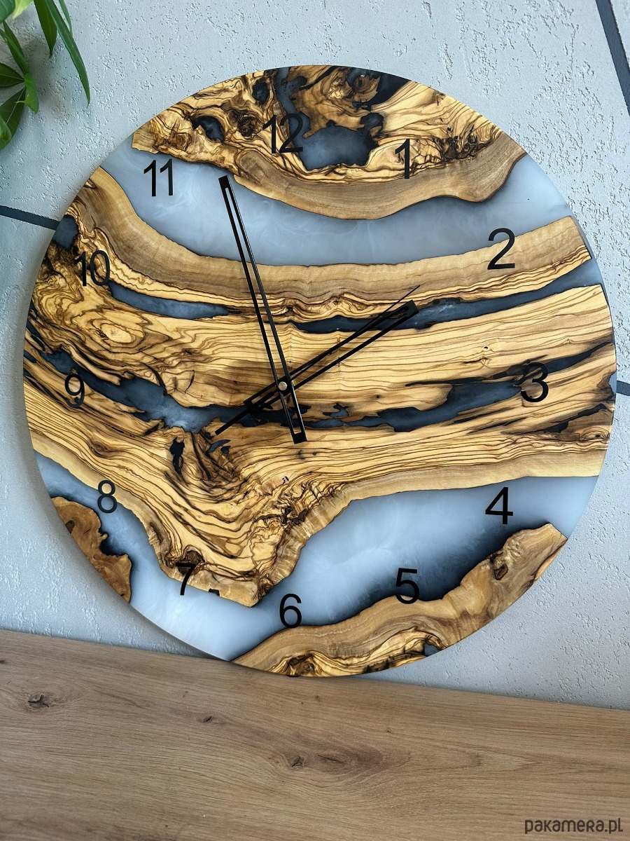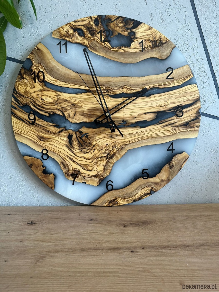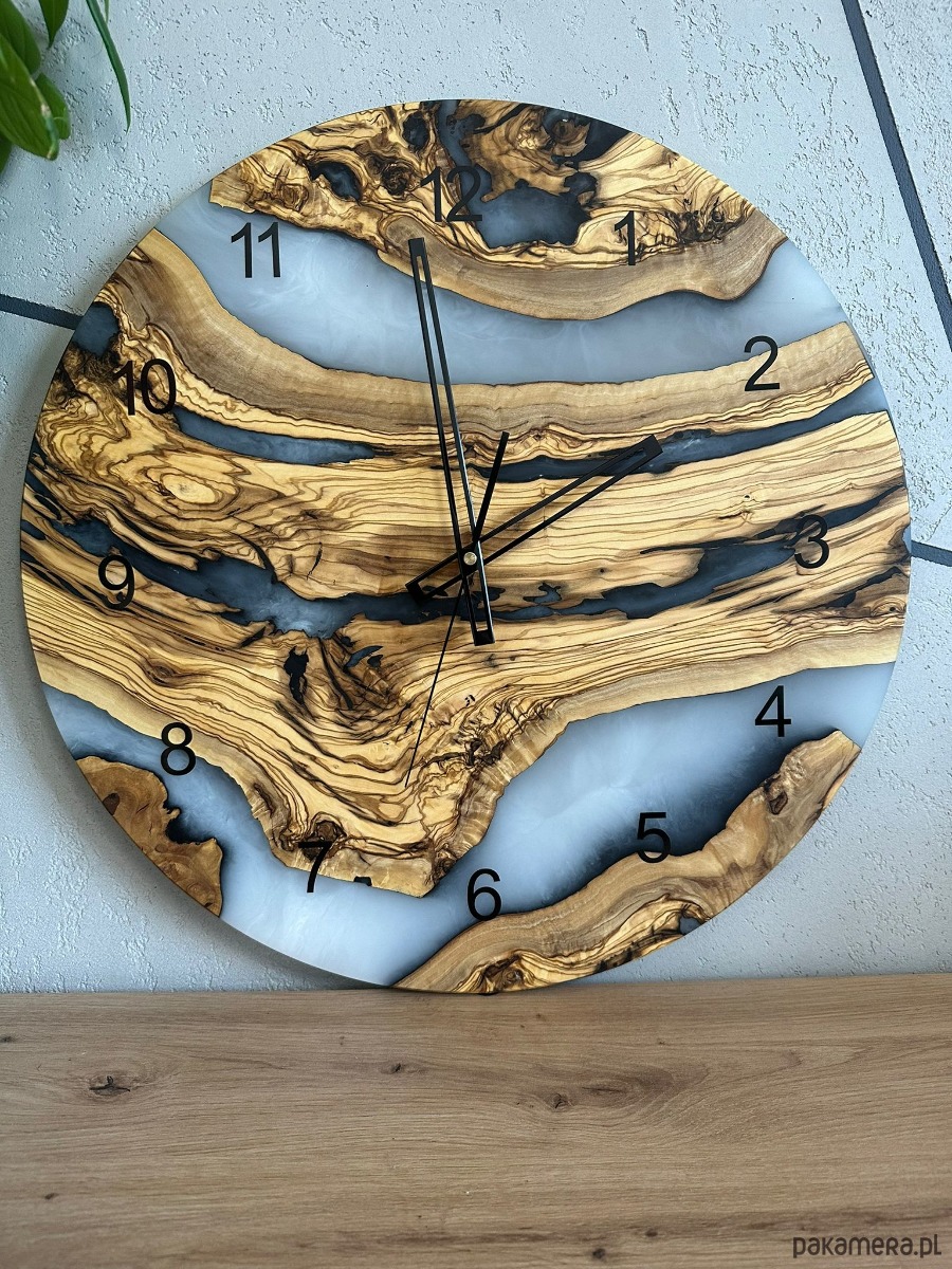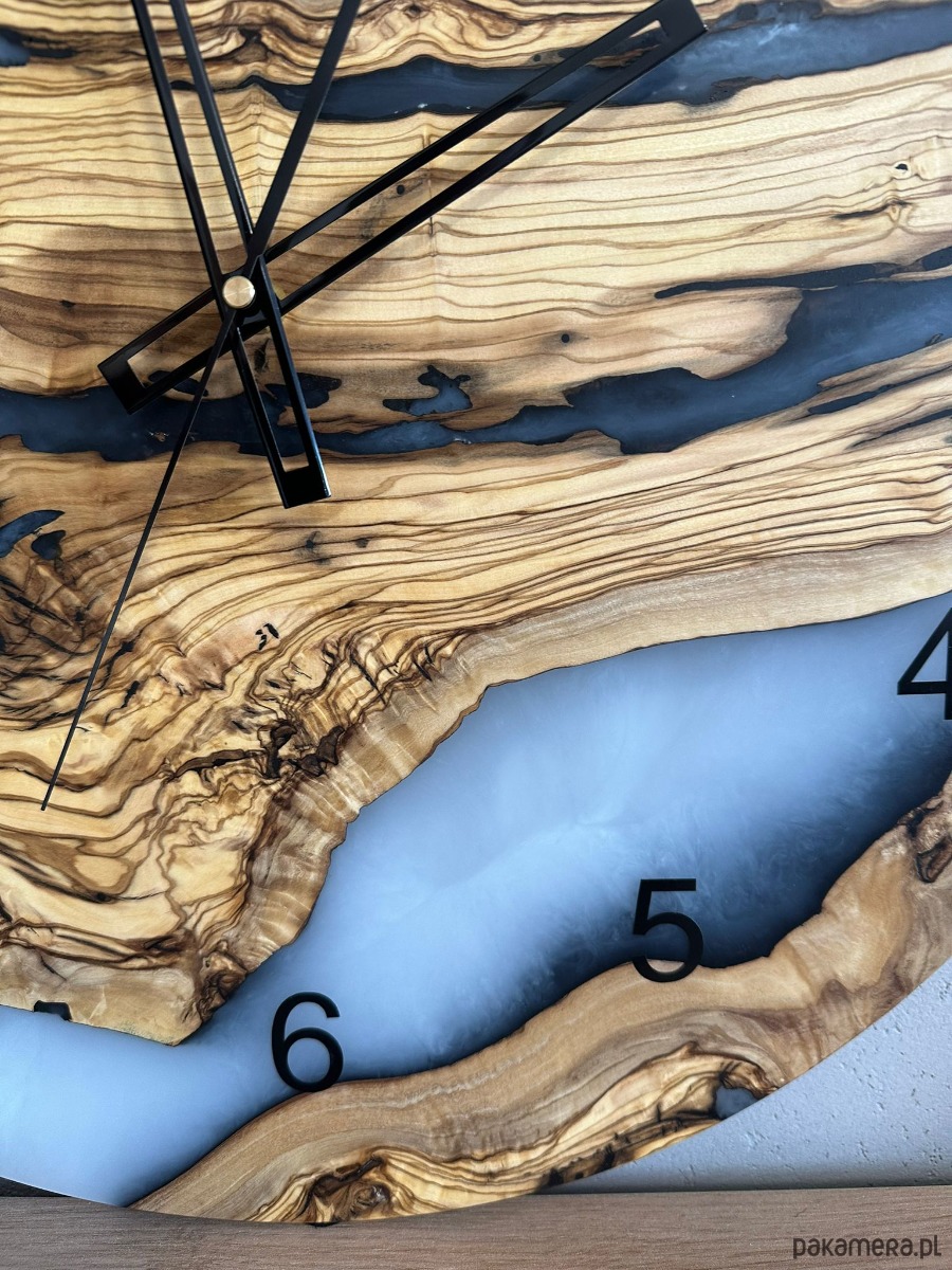 Do tworzenia niepowtarzalnych modeli zazwyczaj wykorzystuje drewno oliwne, ale także mogę zaproponować ci zegar z następujących kawałków drewna: czarny dąb, topola, orzech włoski, akacja, plastry z akacji.