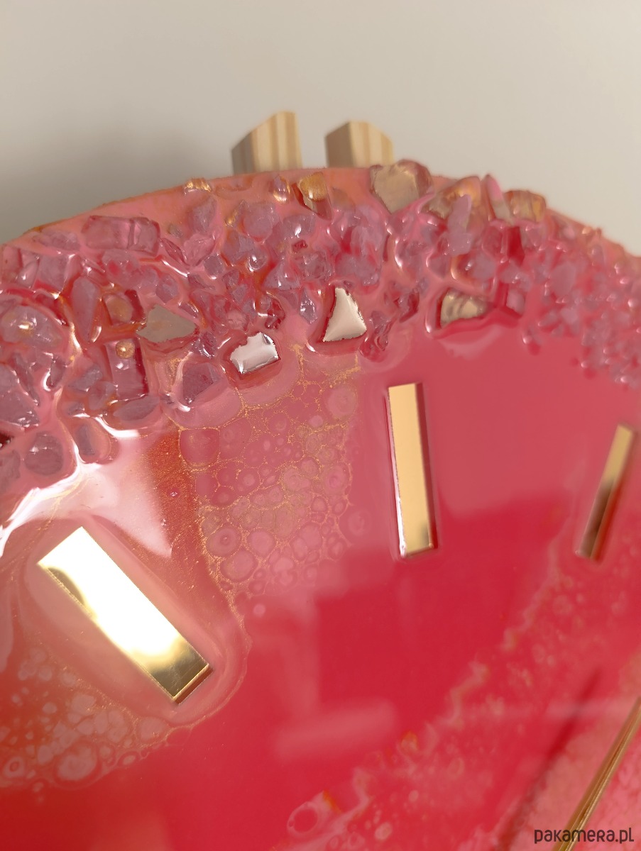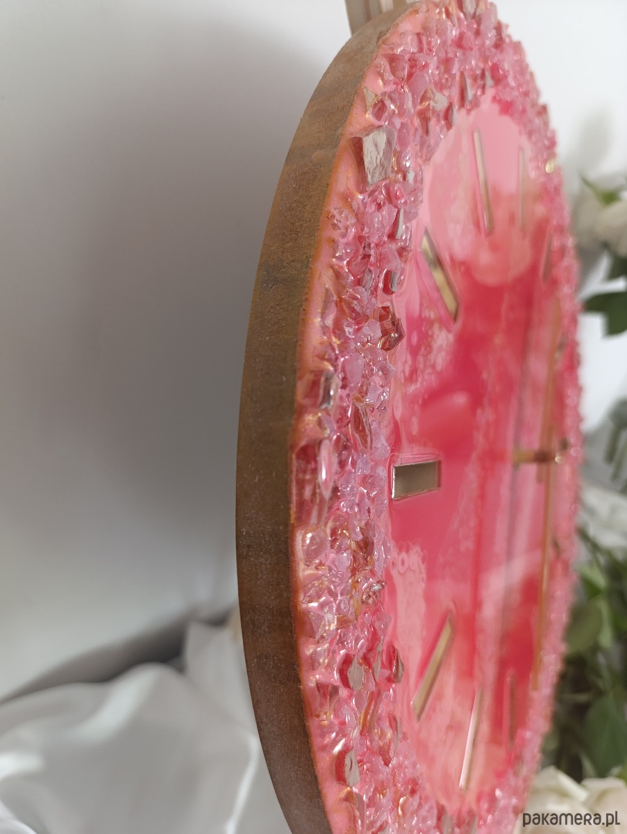 🪞 Materiał: żywica epoksydowa, elementy dekoracyjne, metalowe wskazówki