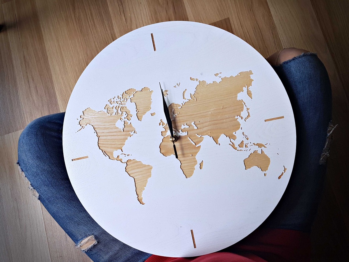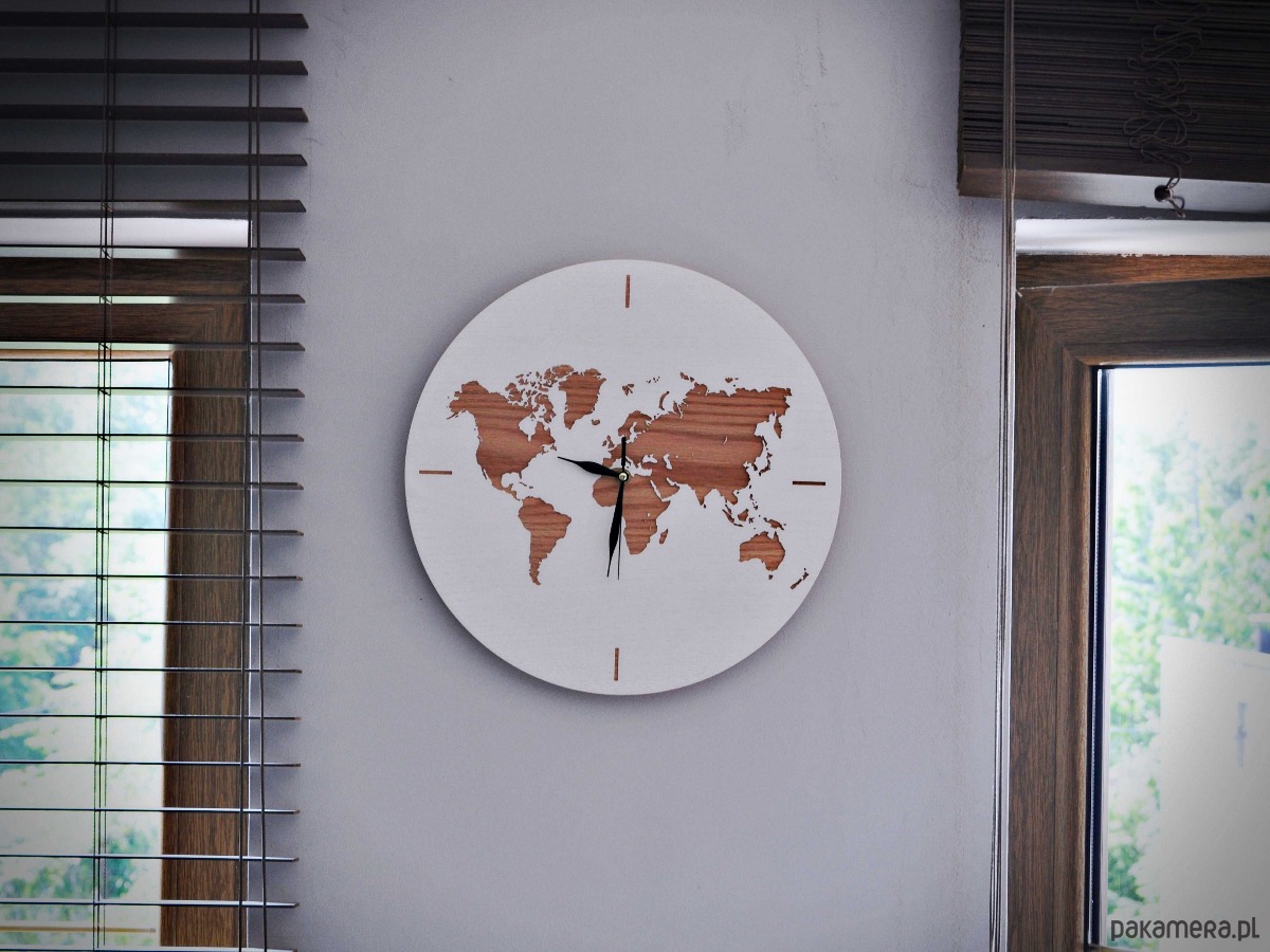 Marzysz o wnętrzu, które będzie inspirować Cię do odkrywania świata każdego dnia? Ten niezwykle oryginalny drewniany zegar ścienny z mapą świata to połączenie nowoczesnego designu i naturalnego piękna litego drewna. Wygrawerowana precyzyjnie na frezarce CNC mapa świata sprawia, że zegar staje się nie tylko funkcjonalnym czasomierzem, ale także wyjątkową dekoracją ścienną – idealną dla miłośników podróży, stylu skandynawskiego i minimalistycznych, a zarazem efektownych dodatków.