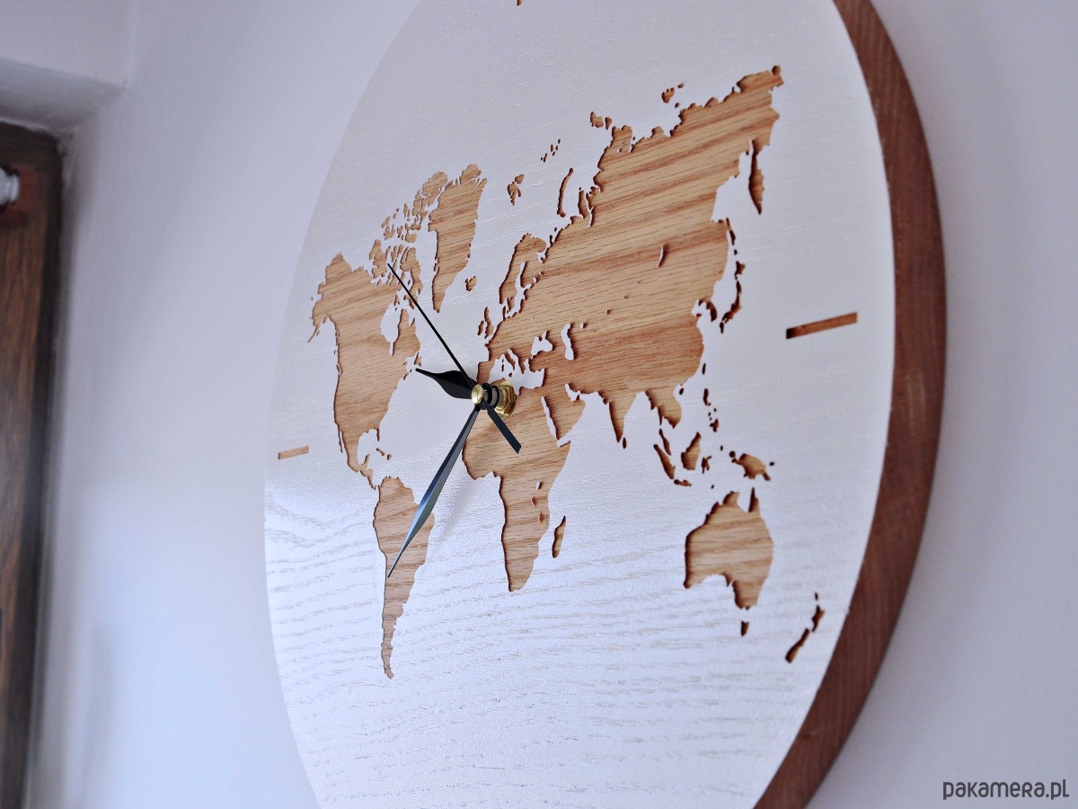 Zegar z litego drewna z mapą świata, WORLD