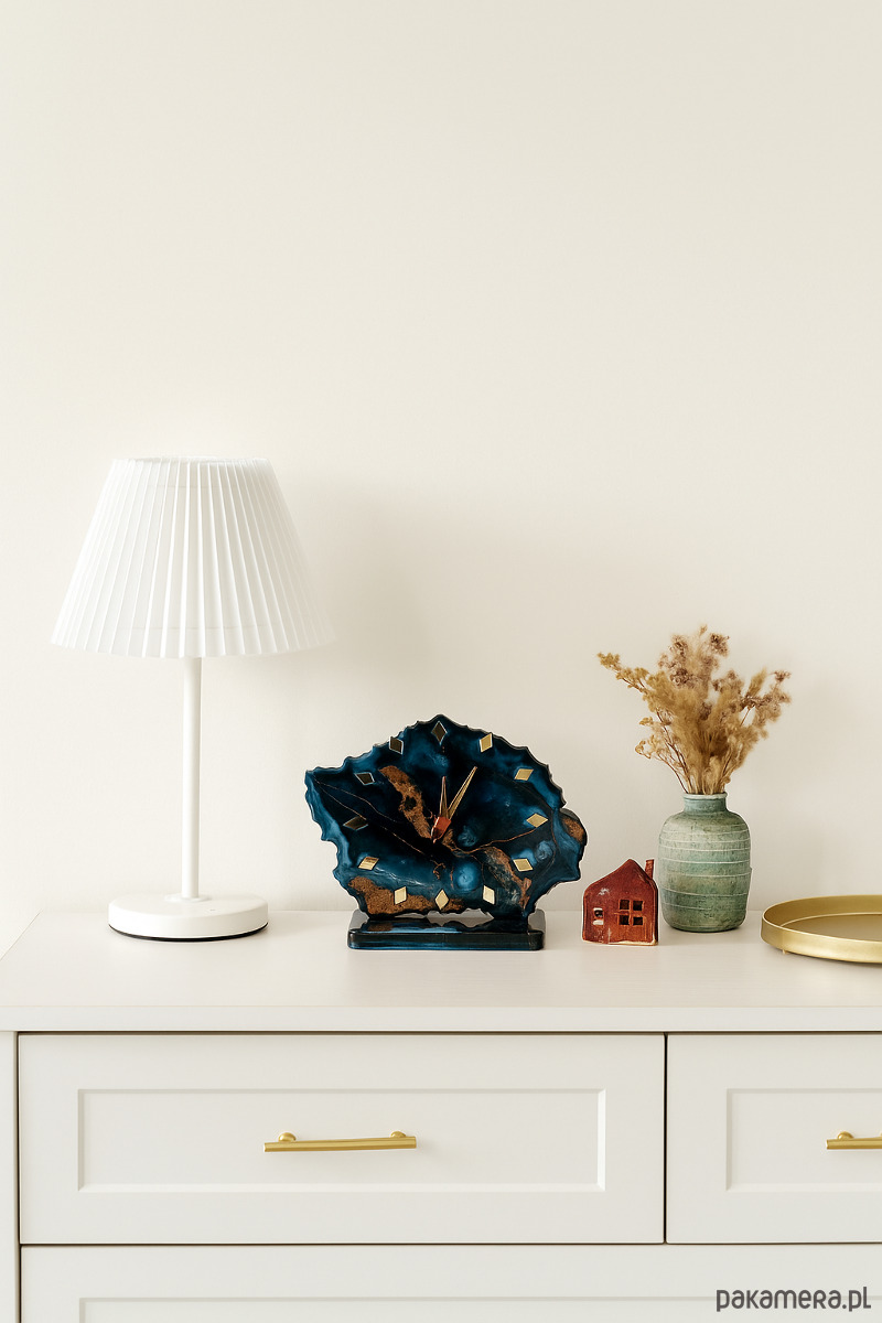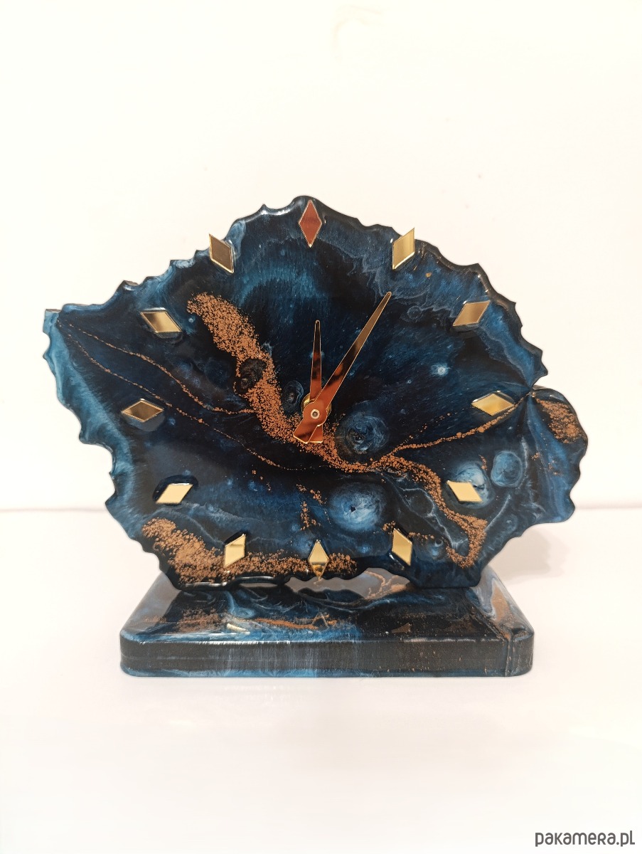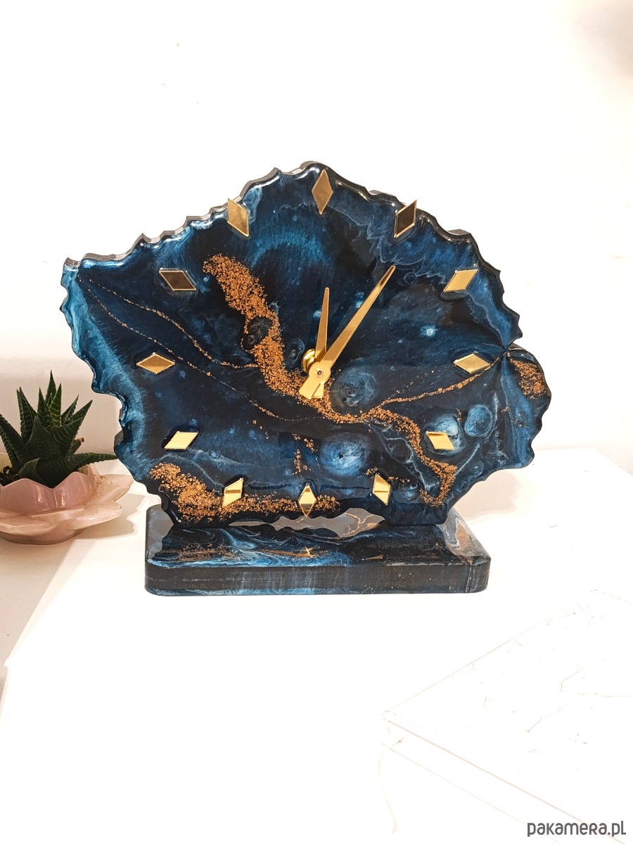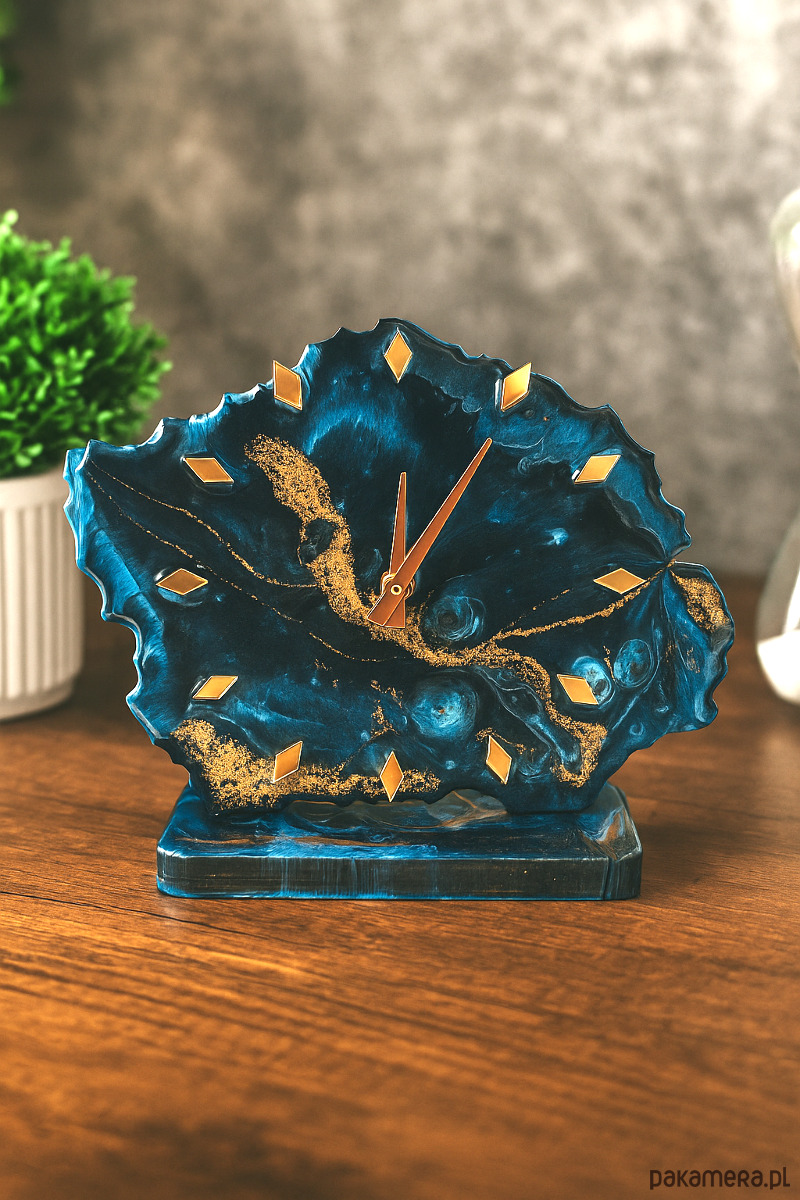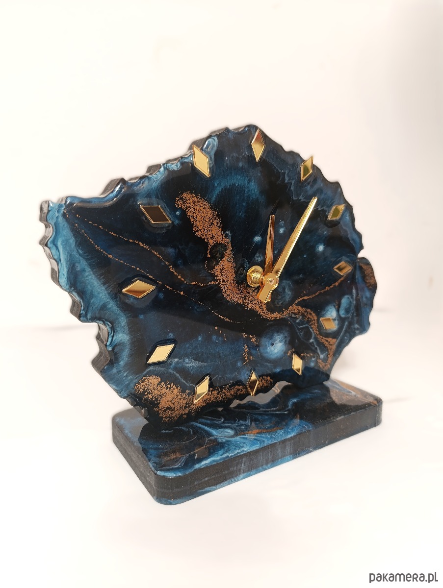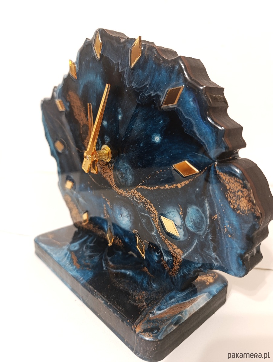 Zegar z żywicy epoksydowej, elegancka dekoracja na biurko lub do salonu