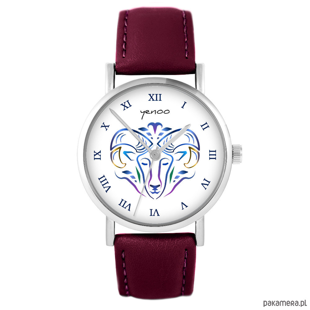 Zegarek - Baran - skórzany, burgund
