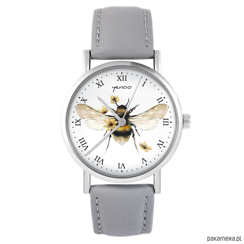 Zegarek - Bee natural - skóra, szary