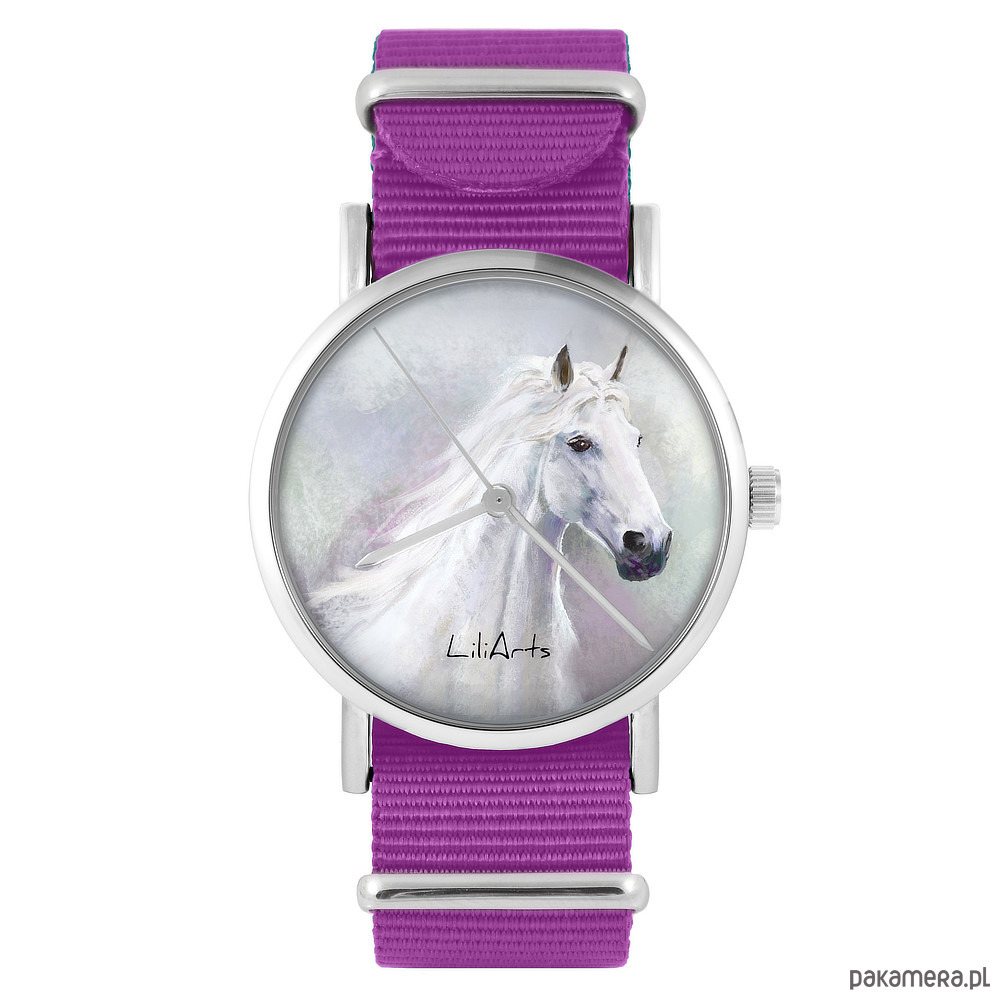 Zegarek - Biały koń - amarant, nylonowy