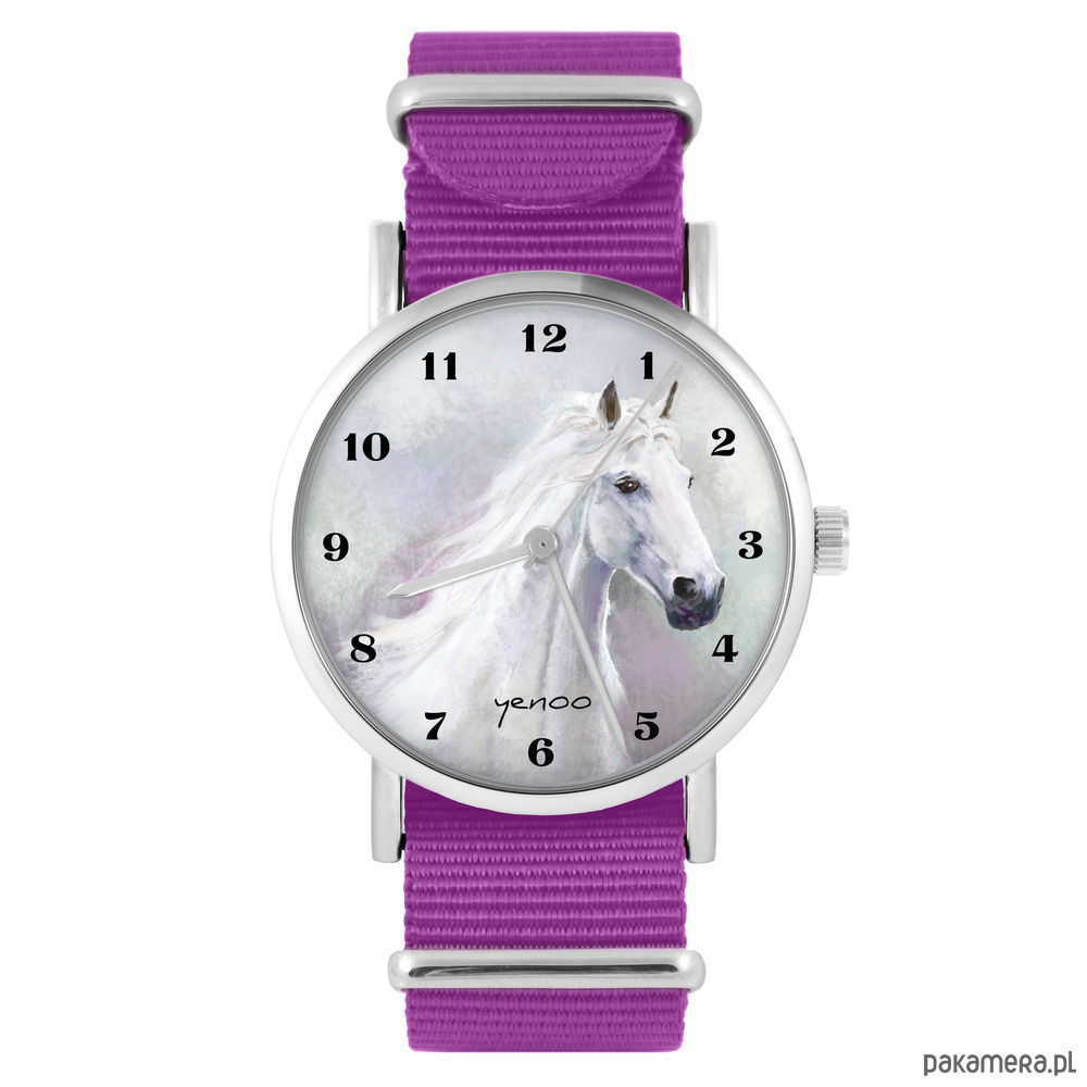 Zegarek - Biały koń cyfry - amarant, nylonowy