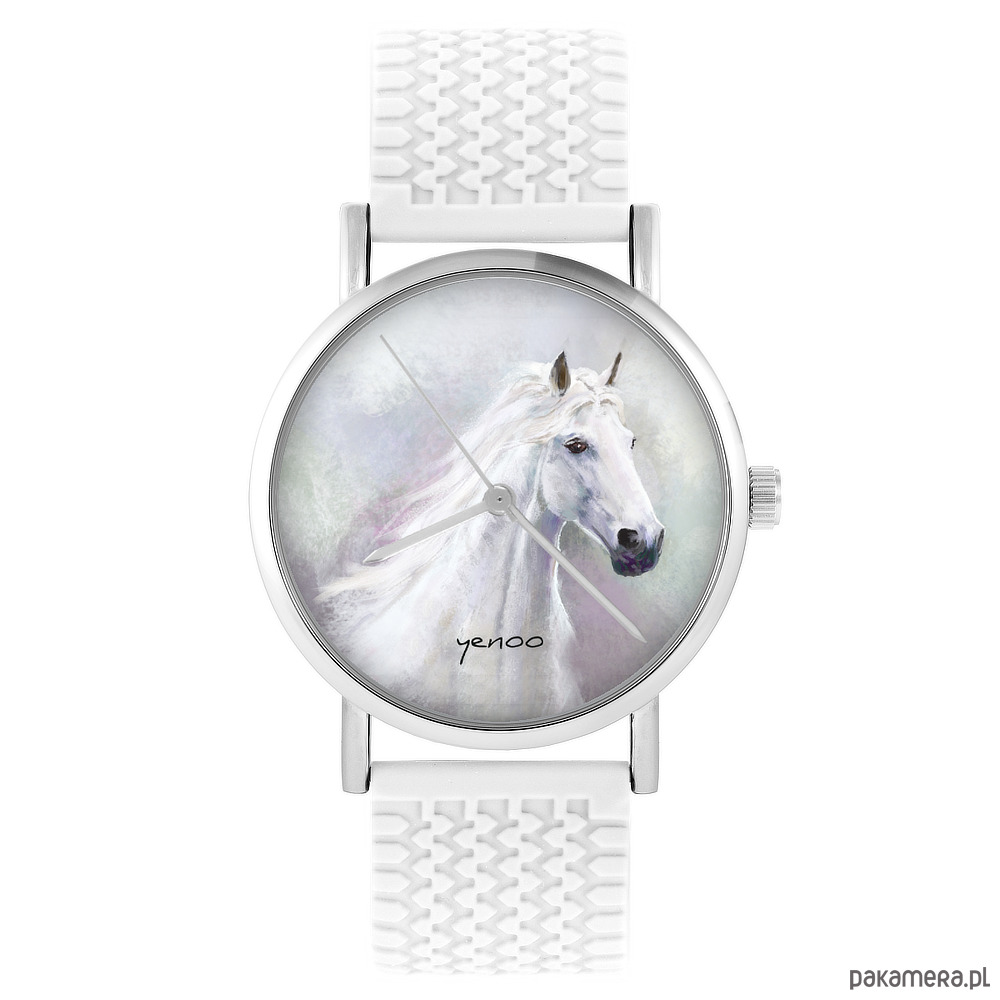 Pasek wykonany jest z silikonu z oryginalnym wytłoczonym wzorem, zapinanie na regulowaną klamrę.