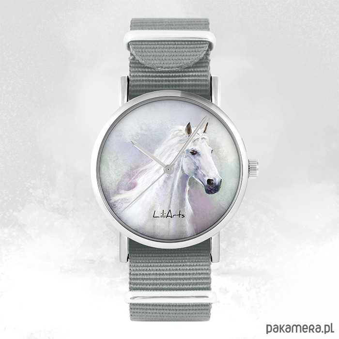 Zegarek - Biały koń - szary, nylonowy