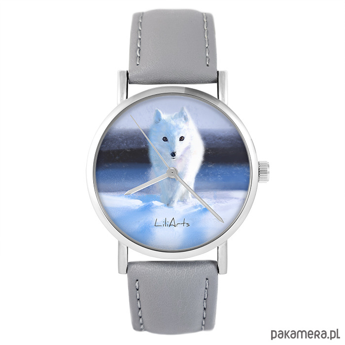 Zegarek - Biały lis - skóra, szary